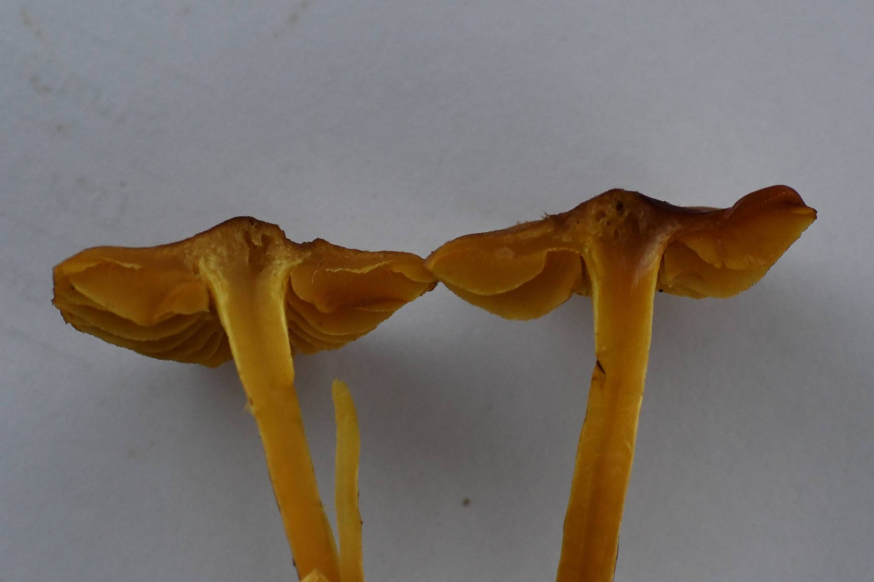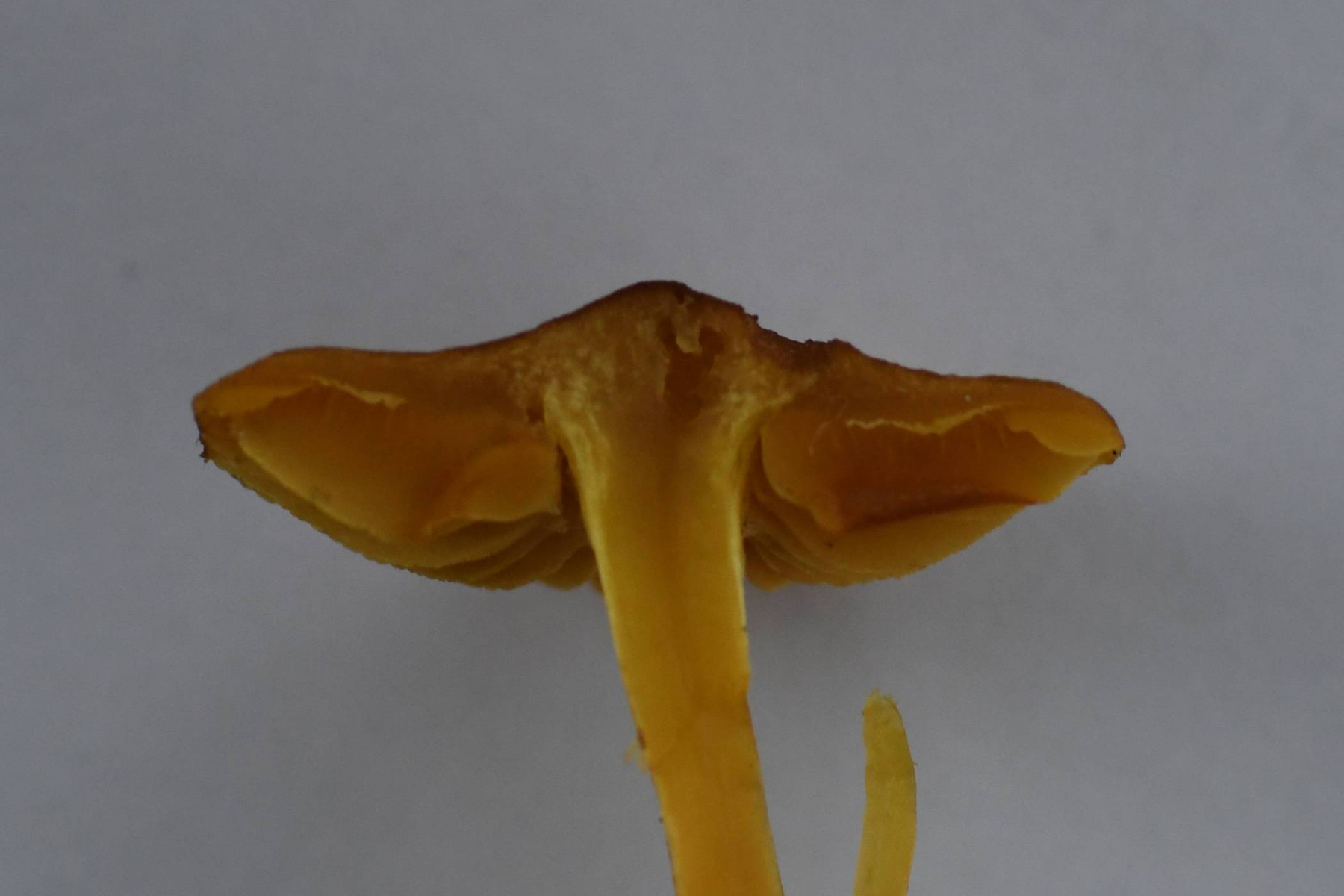 Draußen im Wald fand ich die Lamellen deutlich gelb und nicht orange, auf den Fotos sieht das z.T. etwas anders aus. Mit den Farben ist es wirklich heikel, selbst bei den Tageslichtfotos im Wald sieht derselbe Pilz mitunter ganz unterschiedlich aus, je nachdem, ich welche Richtung ich fotografiert habe.
