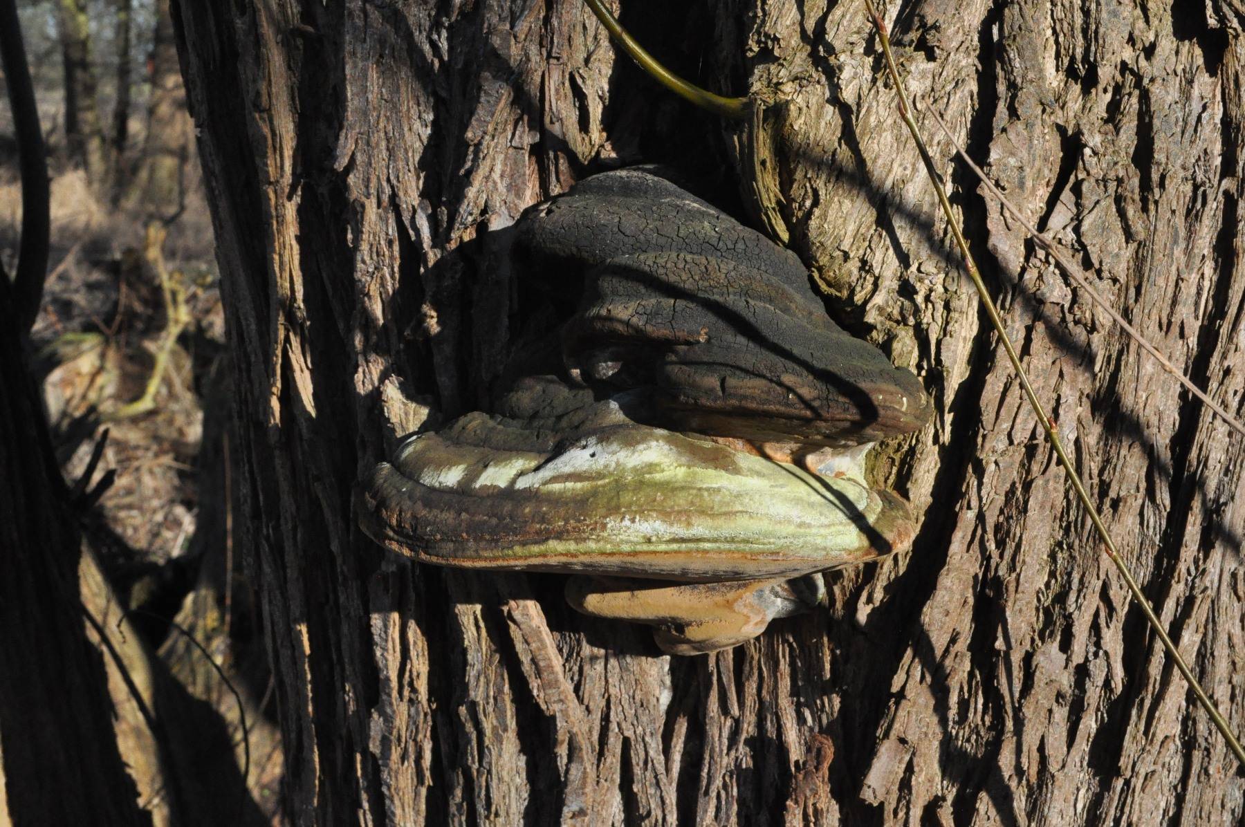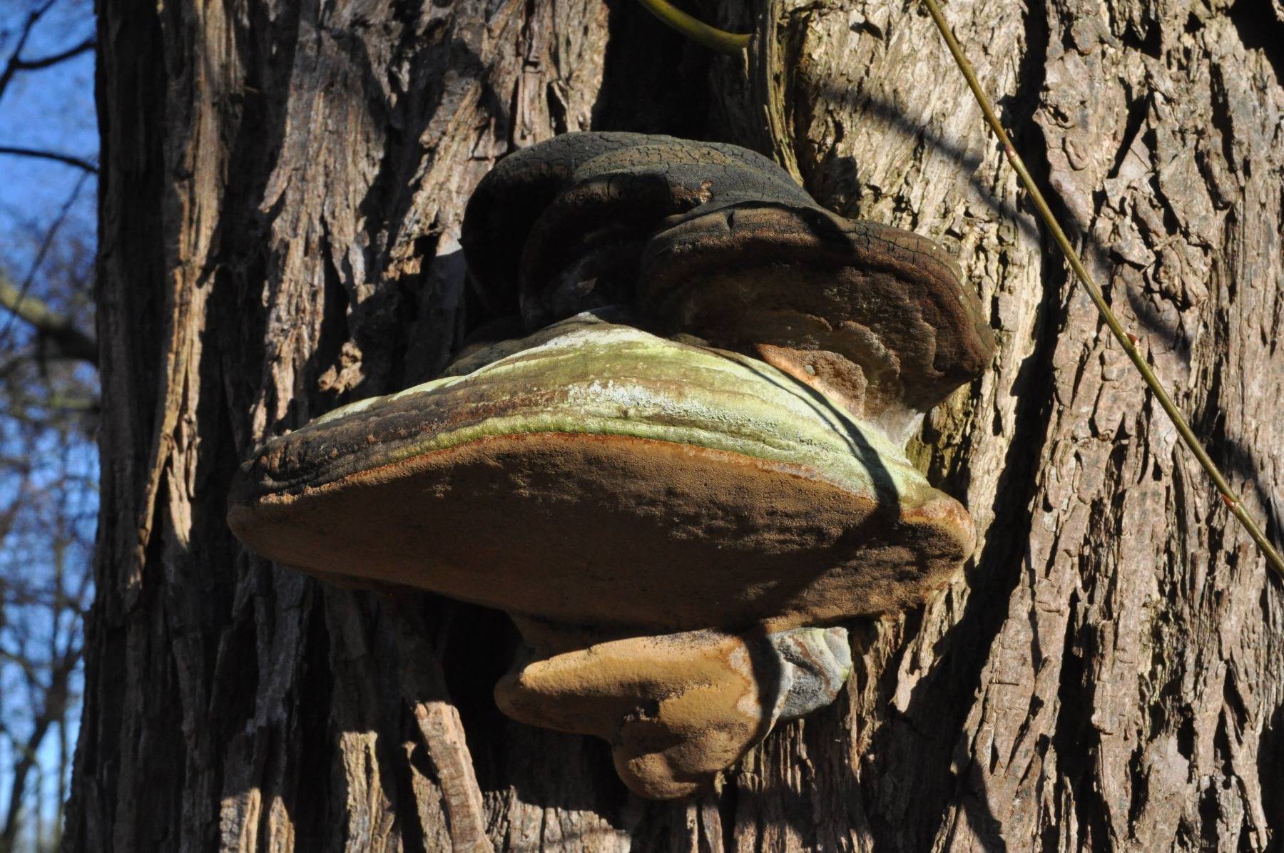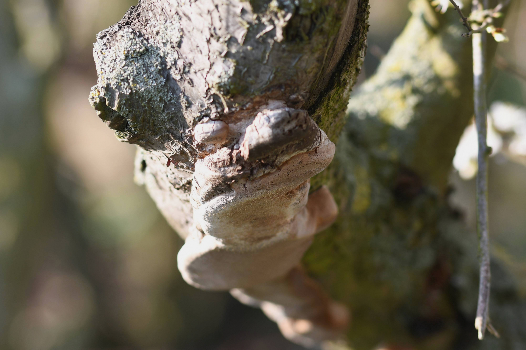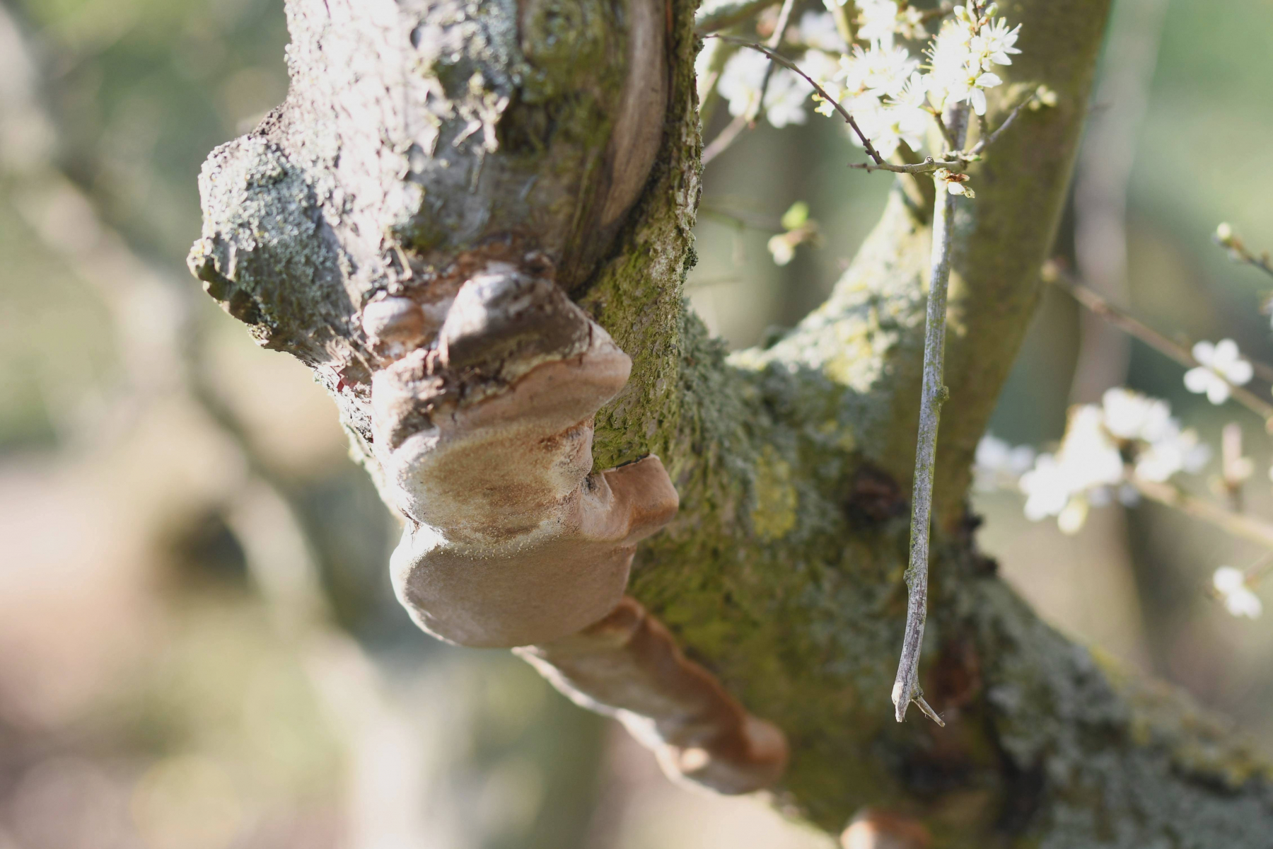Diese Fruchtkörper (Breite ca. 6 cm) wuchsen an einer relativ alten Schlehe in einer Hecke (08.04.2020).
