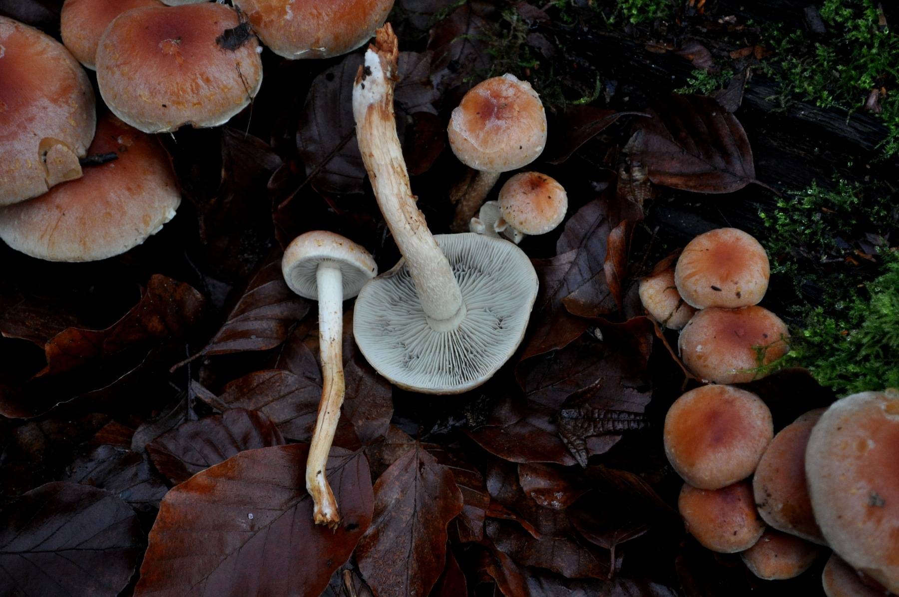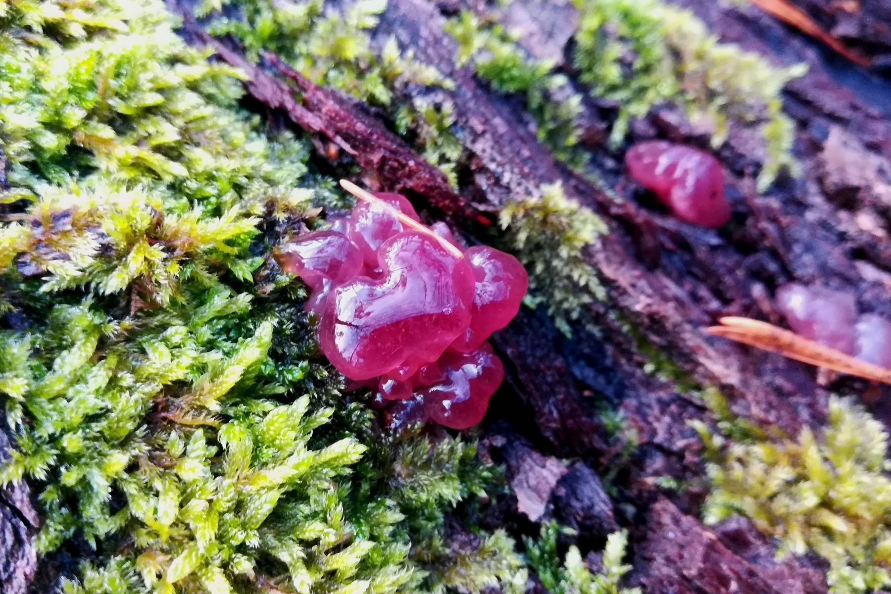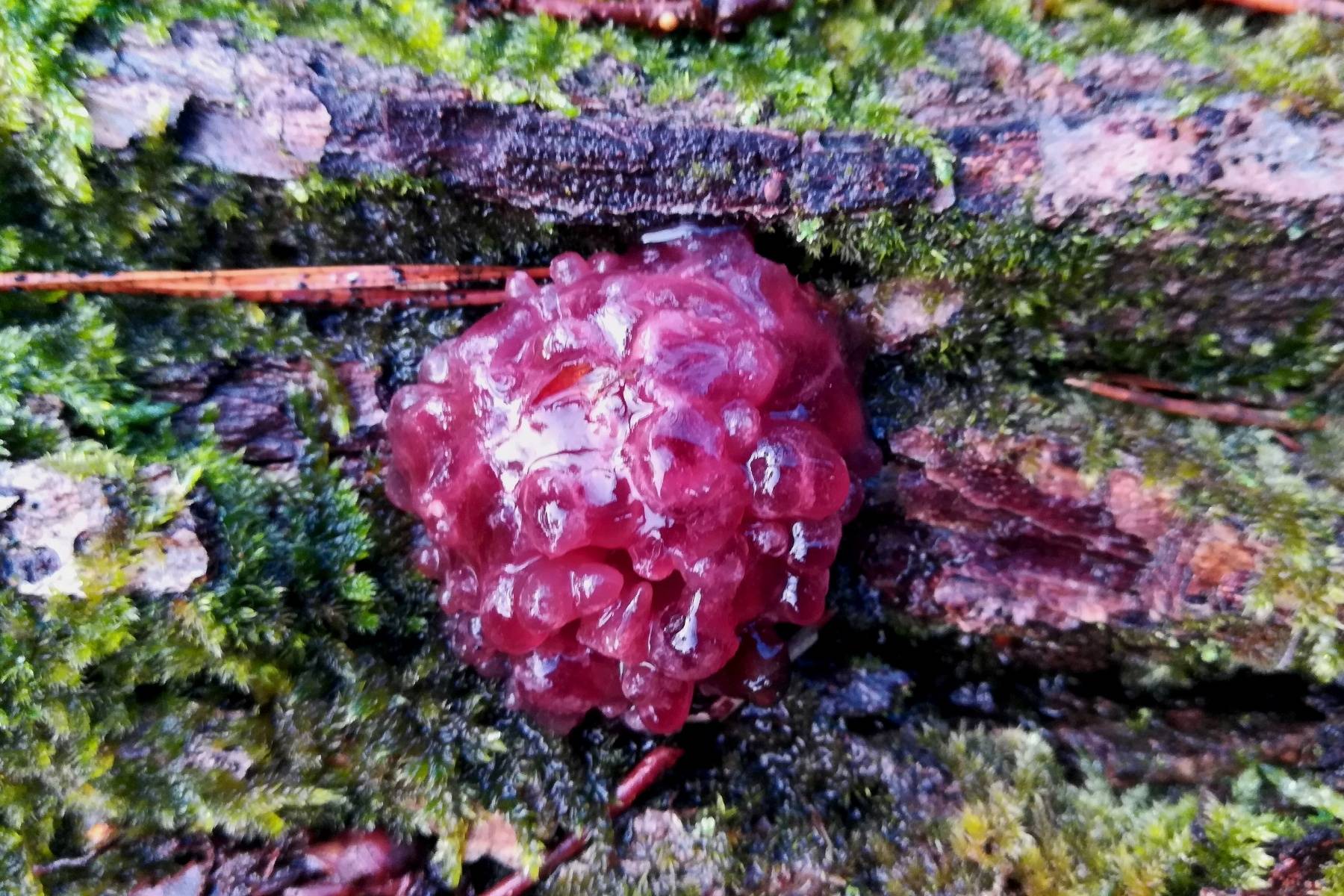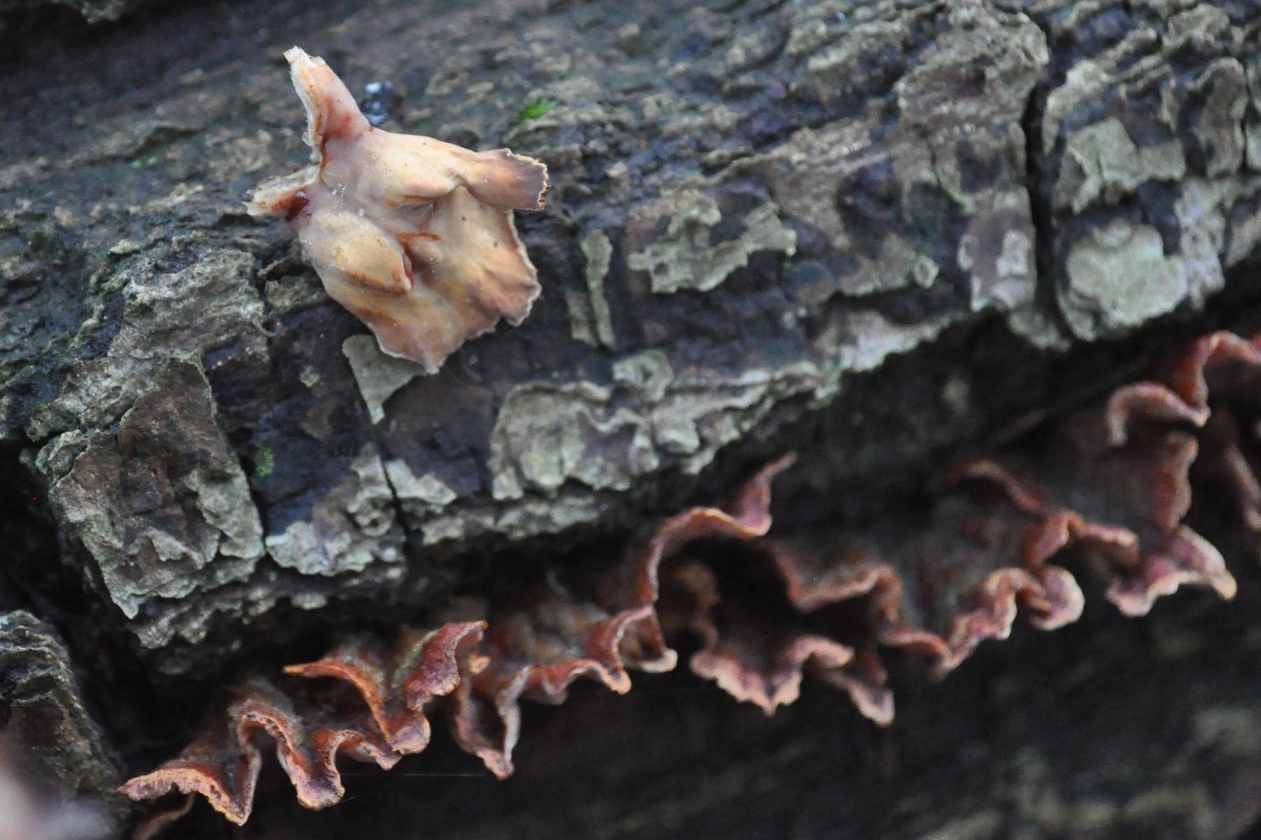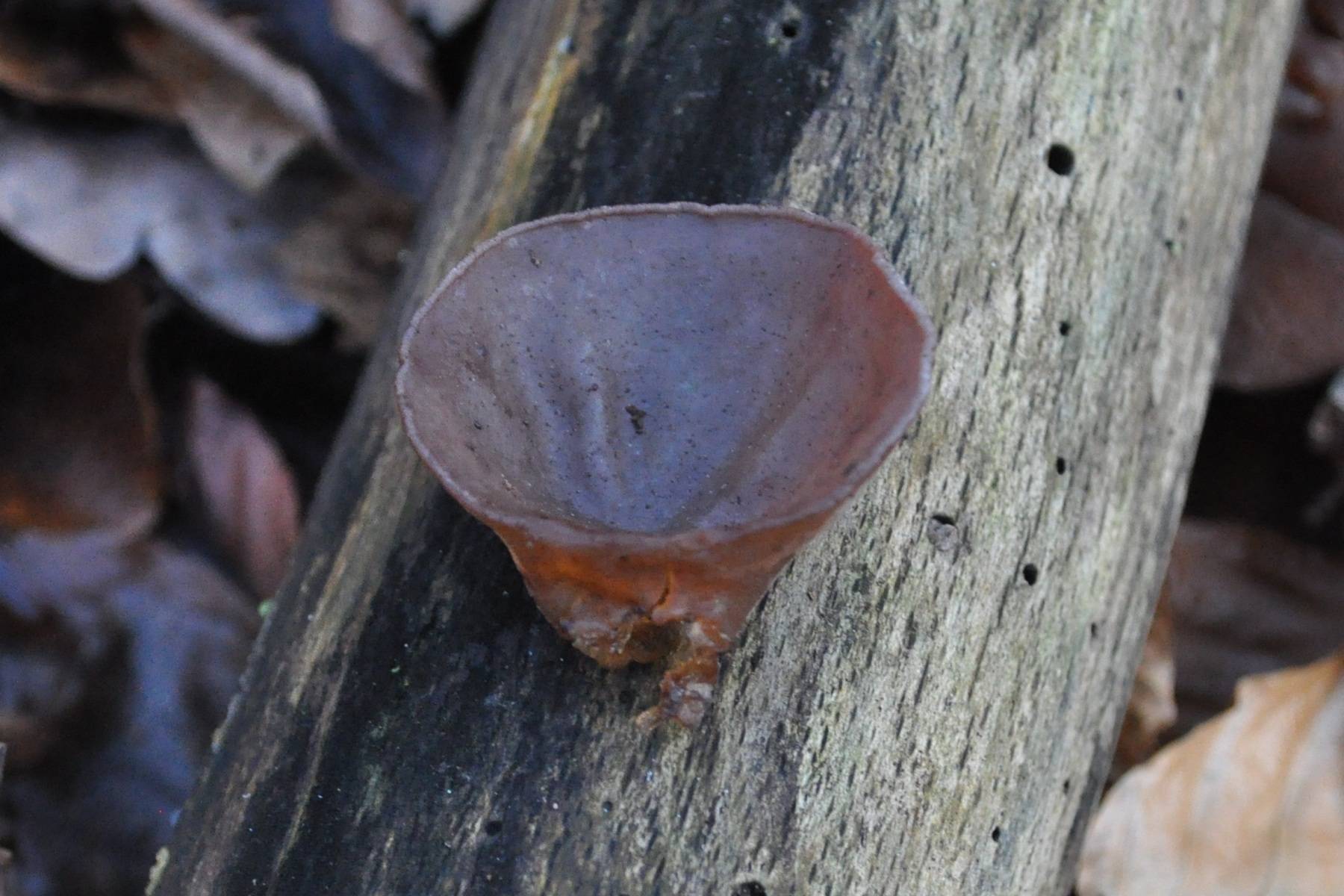 da habe ich mich wohl etwas missverständlich ausgedrückt. A. sarcoides habe ich bisher nur an Laubholz, an anderen Standorten, gefunden (s. Fotos unten; ich gehe mal davon aus, dass das alles A. sarcoides ist). Die waren zwar unterschiedlich geformt, aber nie so "lappig" wie der oben abgebildete Pilz, der an Kiefernholz wächst (in Gemeinschaft mit Trichaptum abietinum). Dort ist aber nur dieses Exemplar zu sehen, andere "gallertbecher-artige" Fruchtkörper finde ich an dem Kiefernstubben derzeit nicht.