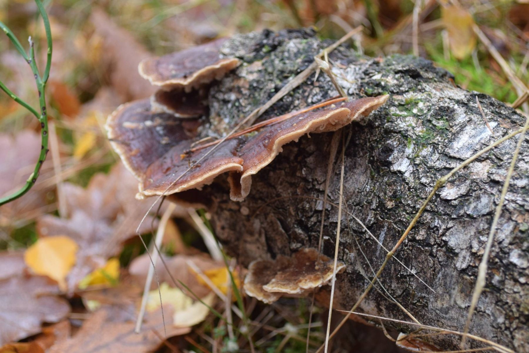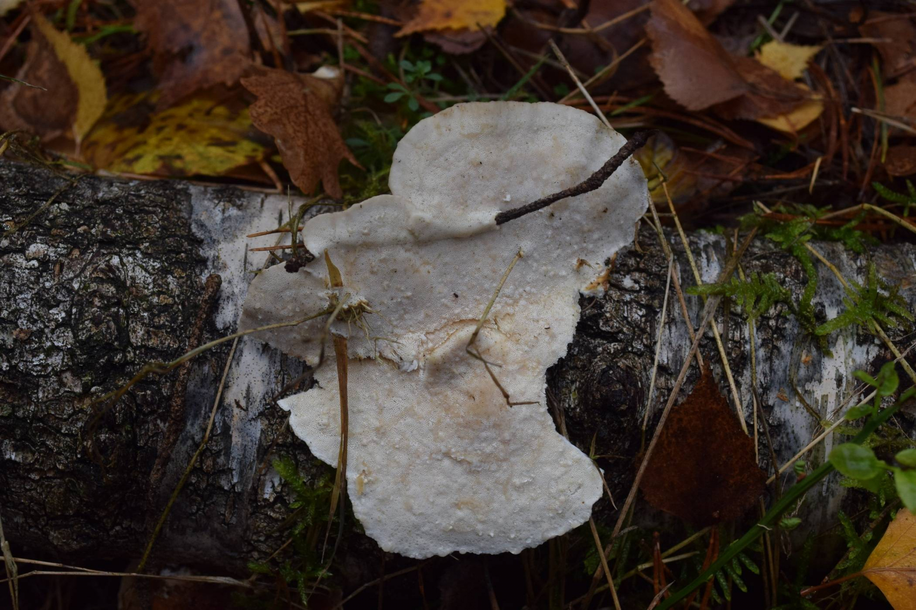Dieser Porling wuchs auf einem schon recht morschen, liegenden Birkenstamm. Porenschicht teilweise herablaufend, Hut dünn (etwa 4.6 mm), Geruch stark säuerlich-obstig, für mich etwas nach Zitrone.