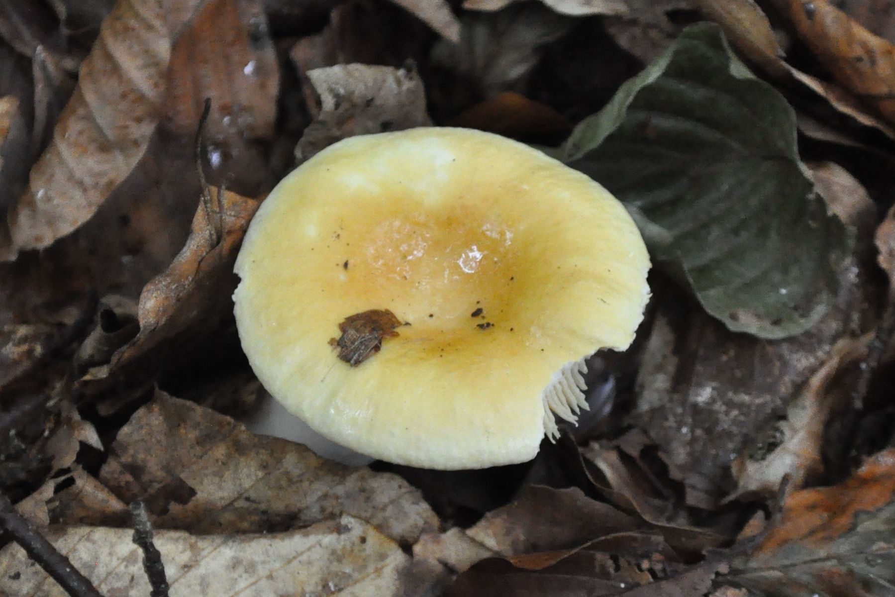 26.09.2022; in einem Buchenbestand auf Geschiebemergel mit schwach lehmiger Sandüberlagerung; ich dachte zuerst an einen Gallentäubling R. fellea, aber der Hut war mir zu auffallend leuchtend gelb. Die sehr gelben Lamellen (fast so wie die Huthaut gefärbt) und der völlig milde Geschmack passen auch nicht zu fellea. Bin mir recht sicher, dass ich diese Art noch nie gefunden habe.