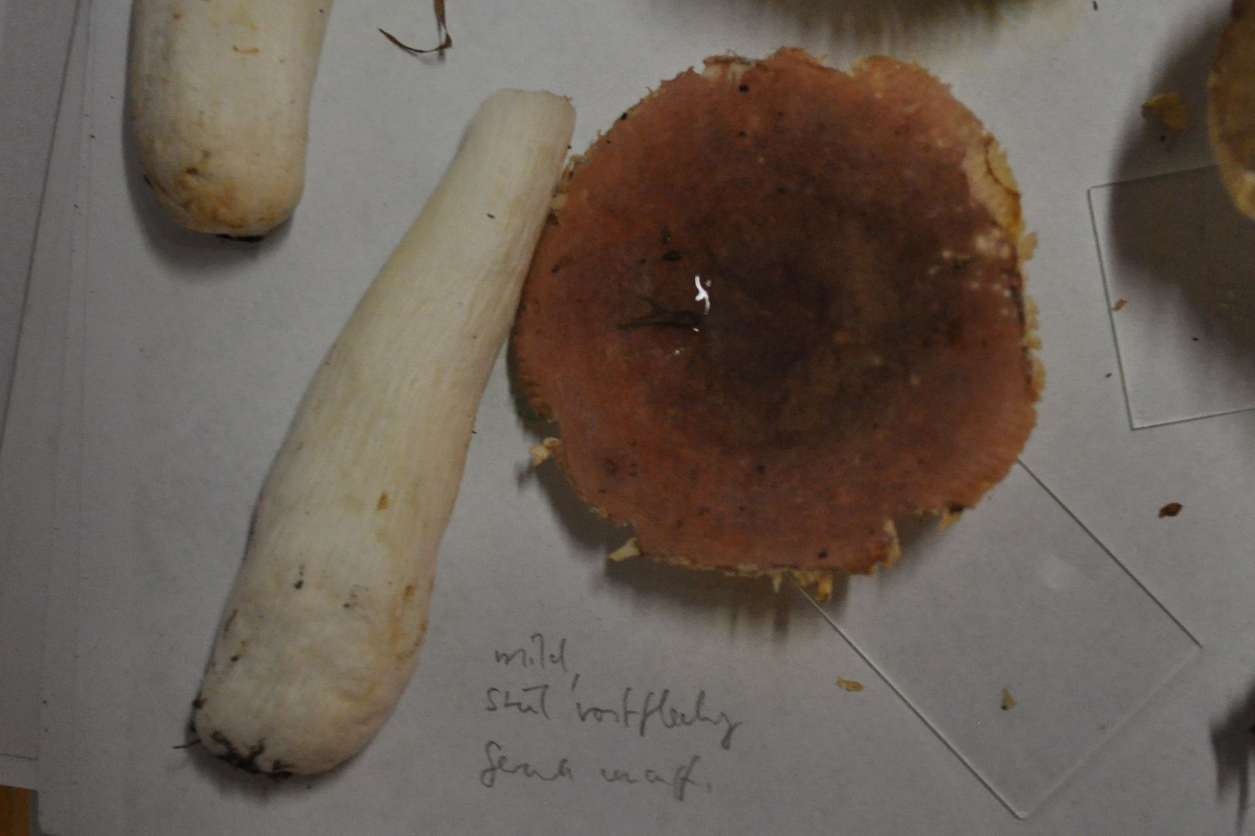 Da der Pilz auch beim Trocknen kaum riecht, allenfalls etwas süßlich-fruchtig, aber jedenfalls nicht essigartig, werde ich ihn als R. risigallina abspeichern. Der Standort unter Buche passt ja auch gut.