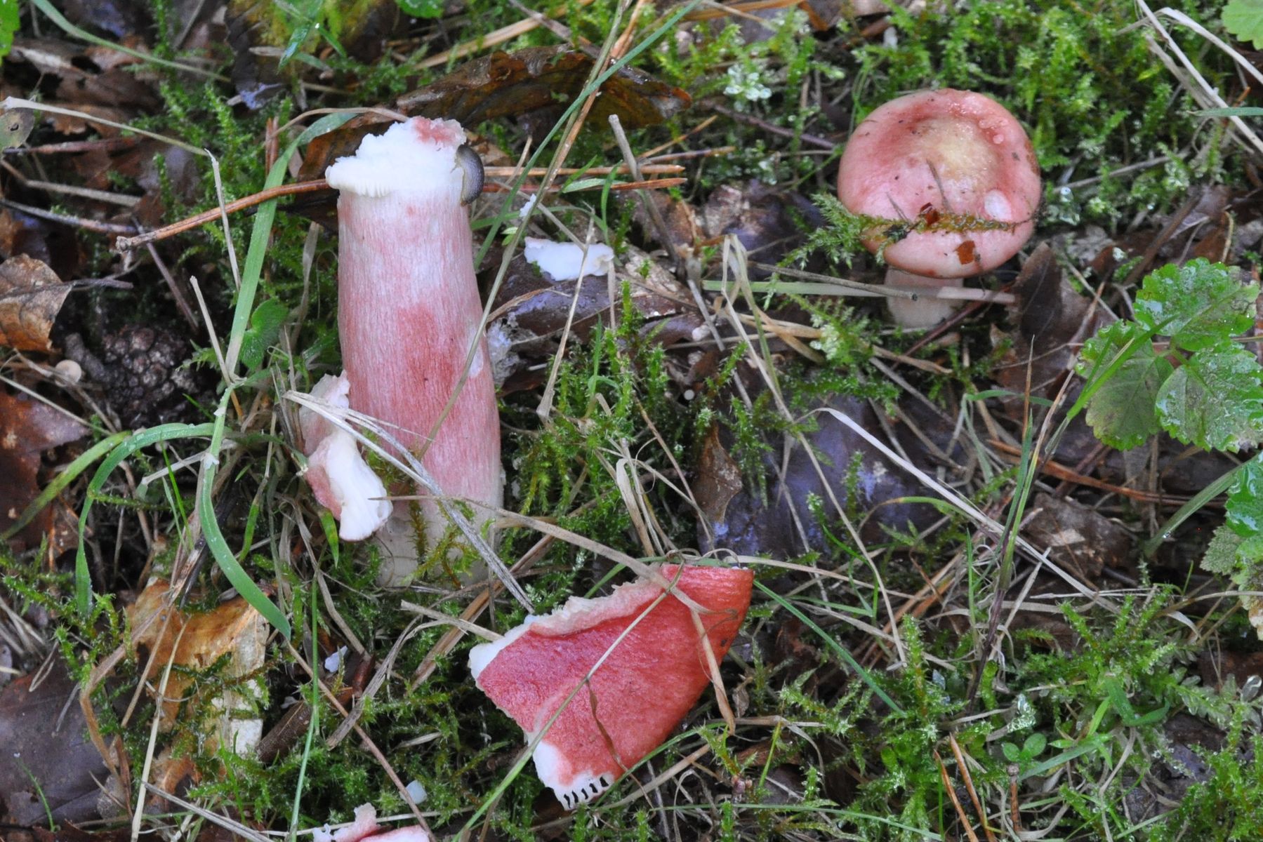 Die matt rosa gefärbten Fruchtkörper mit den stark rosa überlaufenen Stielen fielen mir sofort auf - etwas ähnliches kannte ich bisher nicht.