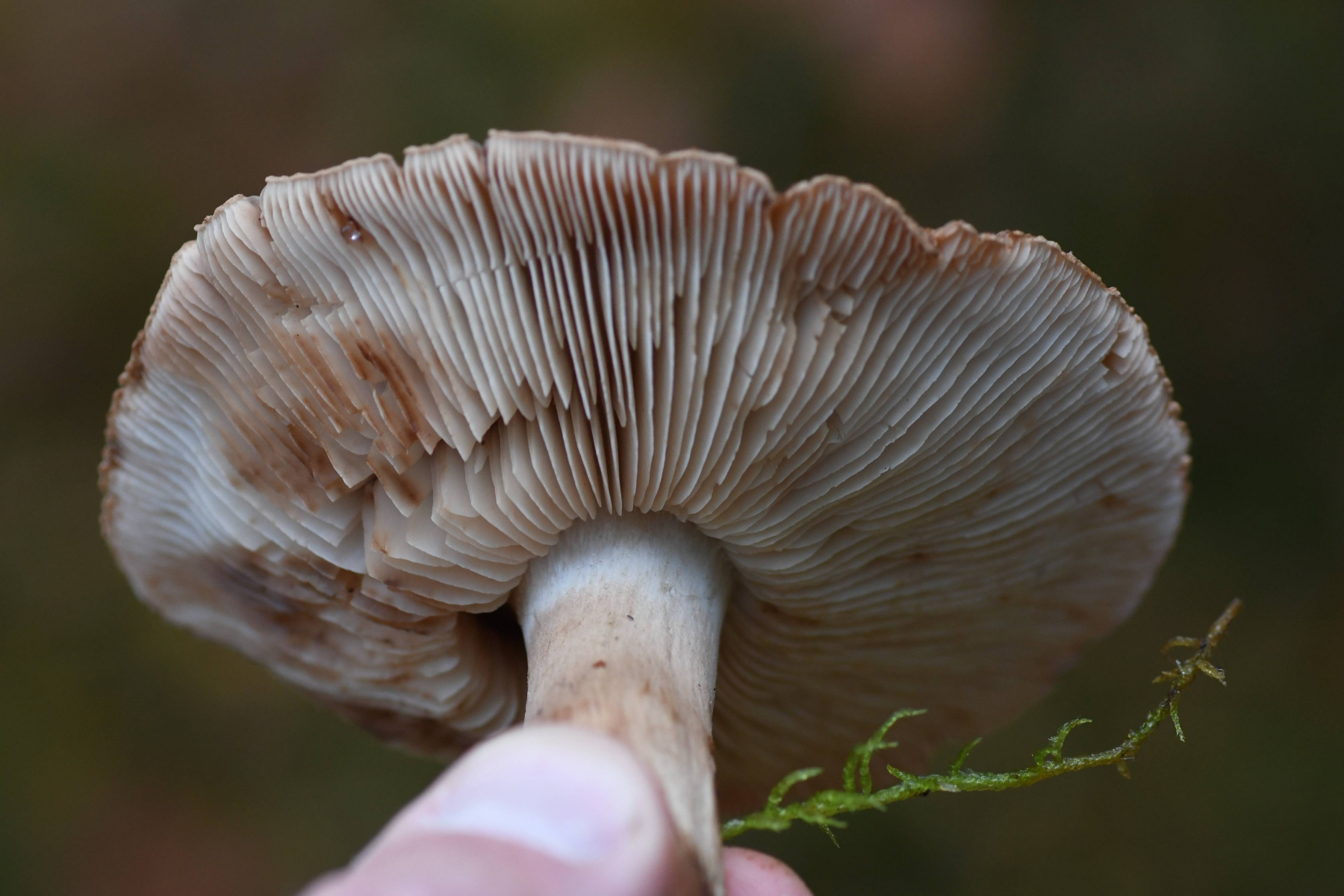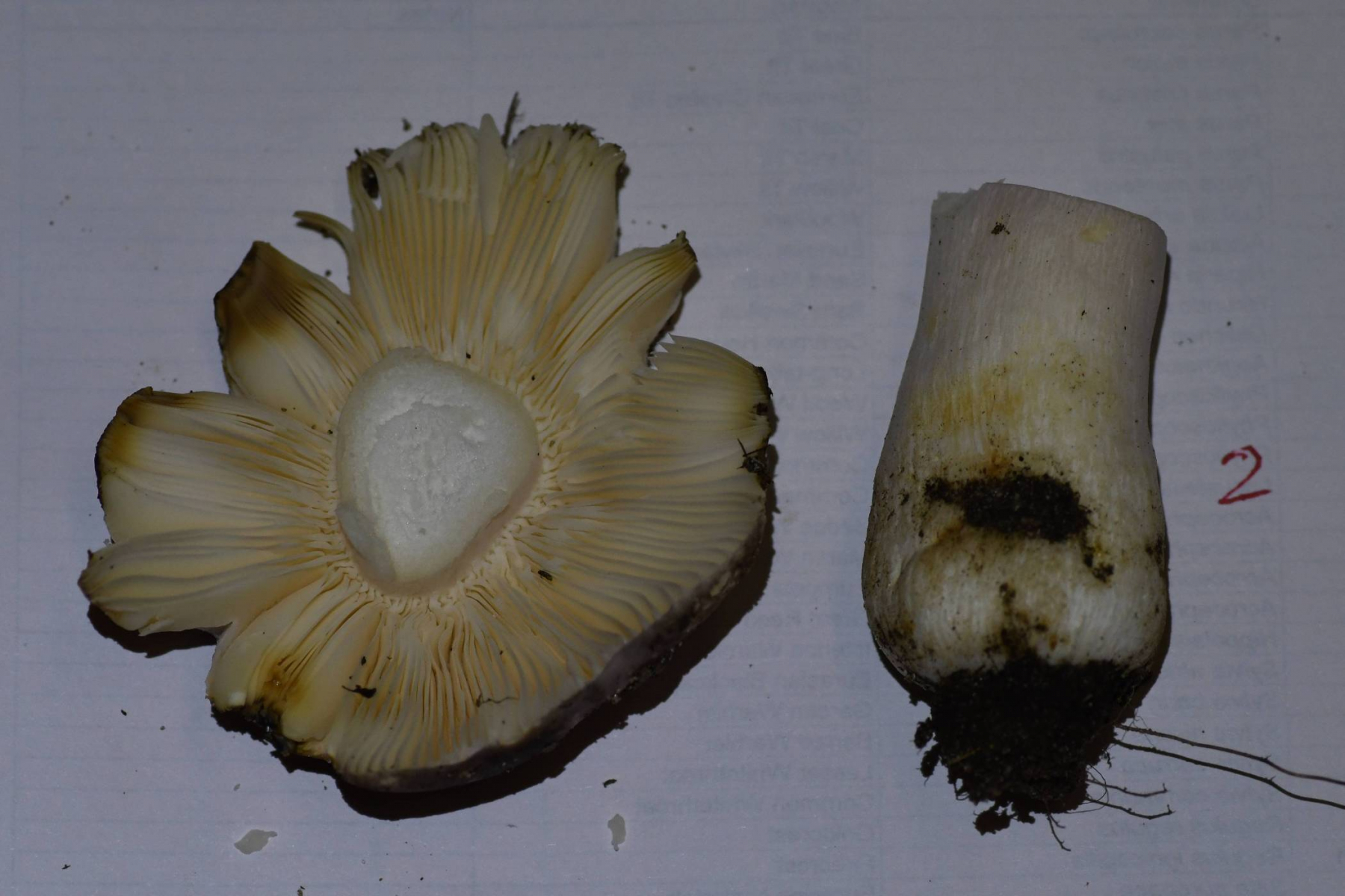 Dann führt Bresinsky noch R. brunneoviolacea an , der v.a durch die stacheligen Sporen unterschieden wird (und nur etwas gilbendes Fleisch) und als Art der Laubwälder genannt wird (im Ggs. zu puellaris: "Nadelwald, seltener Laubwald"), sowie noch ein paar weitere Arten mit Spp IIa-d (z.B. R. versicolor, der aber dunkleres Spp haben sollte, und R. puellula, der aber unter Buchen wachsen sollte).