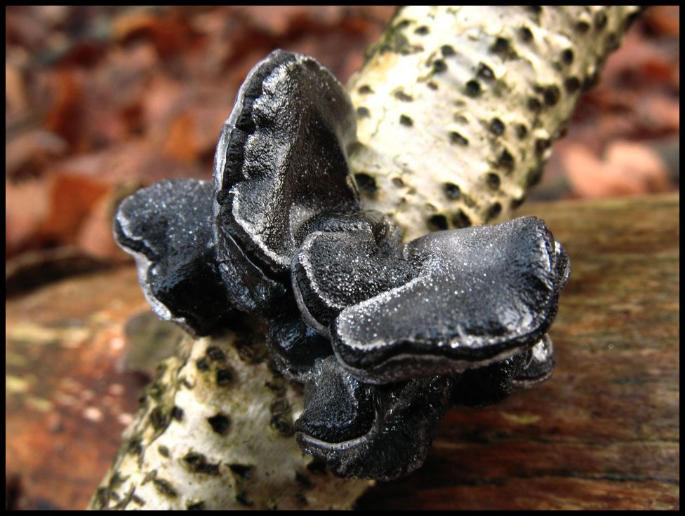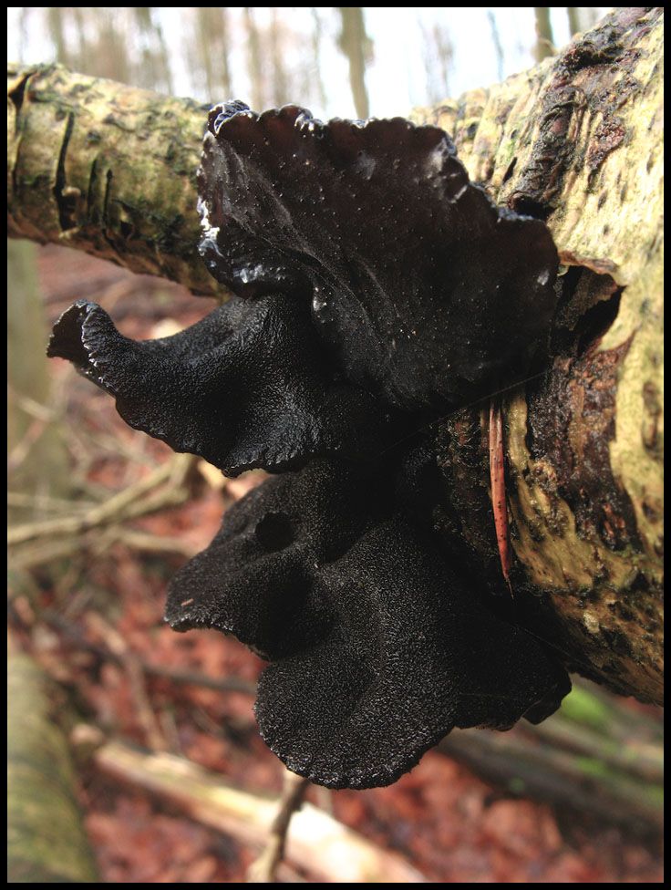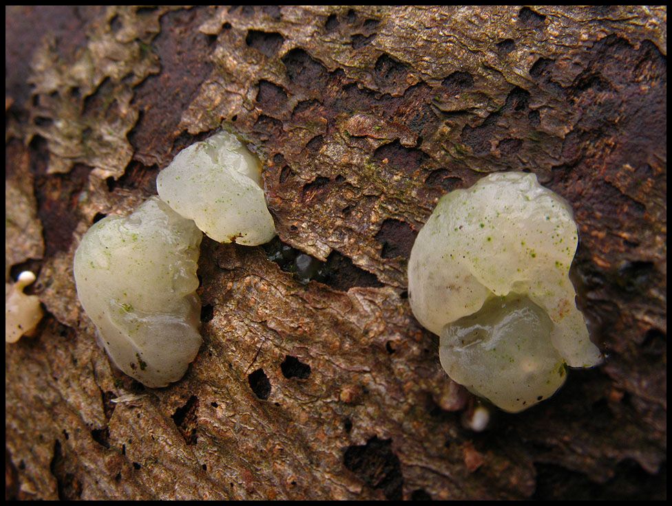 Wenn von glibbrigen Pilzen die Rede ist, dann darf eine Gattung natürlich nicht fehlen. Während der Becherförmige oder Abgestutzte Drüsling (Exidia truncata) noch von annehmbar fester Konsistenz ist, verdienen der Weißliche Drüsling (Exidia thuratiana) und erst recht der Warzige Drüsling (Exidia glandulosa) diese Bezeichnung nur in gefrorenem Zustand.