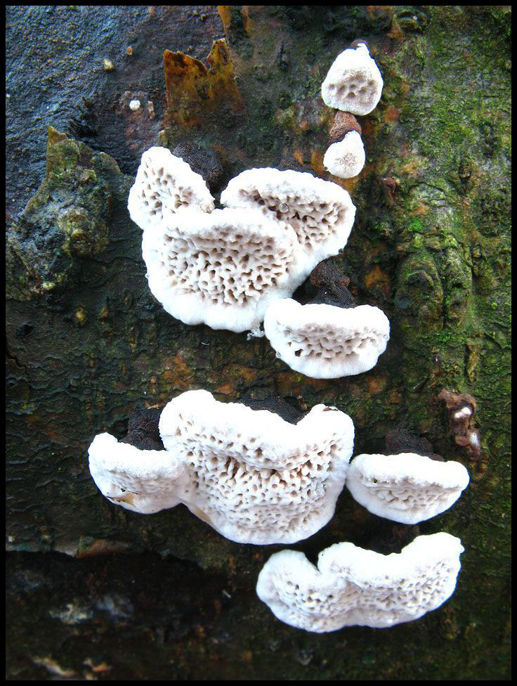 Winter- und Wabenporling scheinen sich ja auch ganz gut an der Hutoberfläche unterscheiden zu lassen, die bei zweiterem - soweit ich das auch hier an gefundenen Bildern beurteilen kann, aber wie man ja z.B. auf Sepps Bild sieht - geschuppt wirkt. Mein älteres Exemplar, das ein paar Zentimeter neben dem jüngeren stand, hatte eine typische Winterporlingshutoberfläche. Dessen Durchmesser betrug übrigens nur 1 cm, weshalb die Poren vielleicht in Relation recht groß wirken