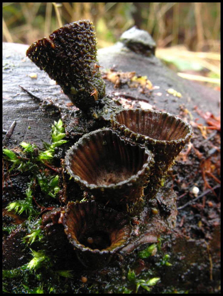 In der Nähe hatte ich dann (bei schlechten Lichtverhältnissen) einen Erstfund zu verzeichnen. Ein Teuerling - soviel glaubte ich zu wissen - und so machte ich aus ihm zu Hause einen Gestreiften Teuerling (Cyathus striatus).