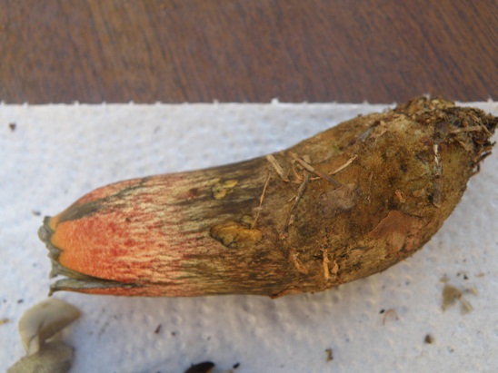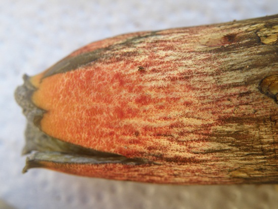 gesamter Fruchtkörper ca. 5cm lang, Hut-Durchmesser ca. 4cm