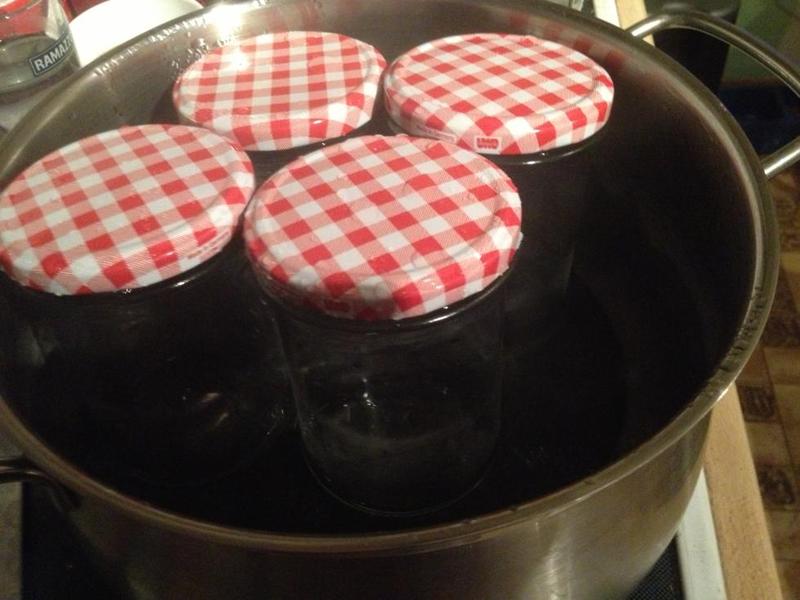 ich fange mit den gläsern an. 4 einmachgläser (a 440cl) werden für 30 minuten gekocht.