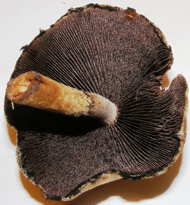 Hab beide mal der Länge nach durchgeschnitten und beim größeren Exemplar zeigte sich eine minimale bläuliche Verfärbung in der Mitte der Kappe.