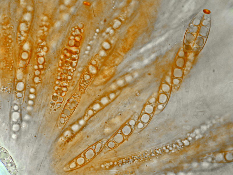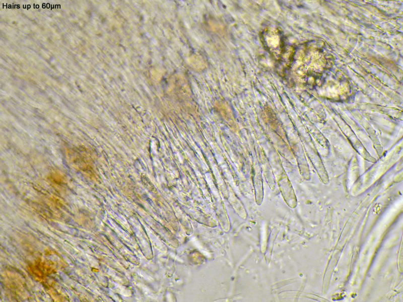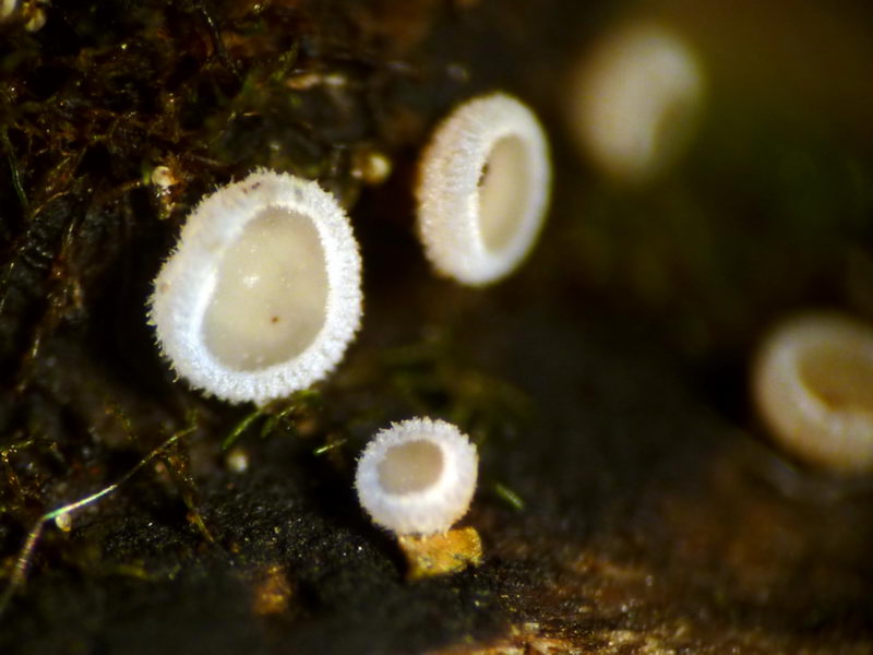 Bis auf eine Art. Ein ungewöhnlich großer (bis 3mm), weißer Haarbecherling, der zu absolut keiner bekannten Art passt und auch von Zotto nicht zu irgendeiner Gattung zugeordnet werden kann. Wir haben uns am Ende auf "Trichopeziza sp." geeinigt. Was mich allerdings auch nicht so ganz zufrieden macht...