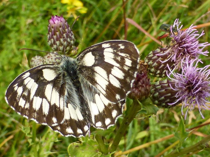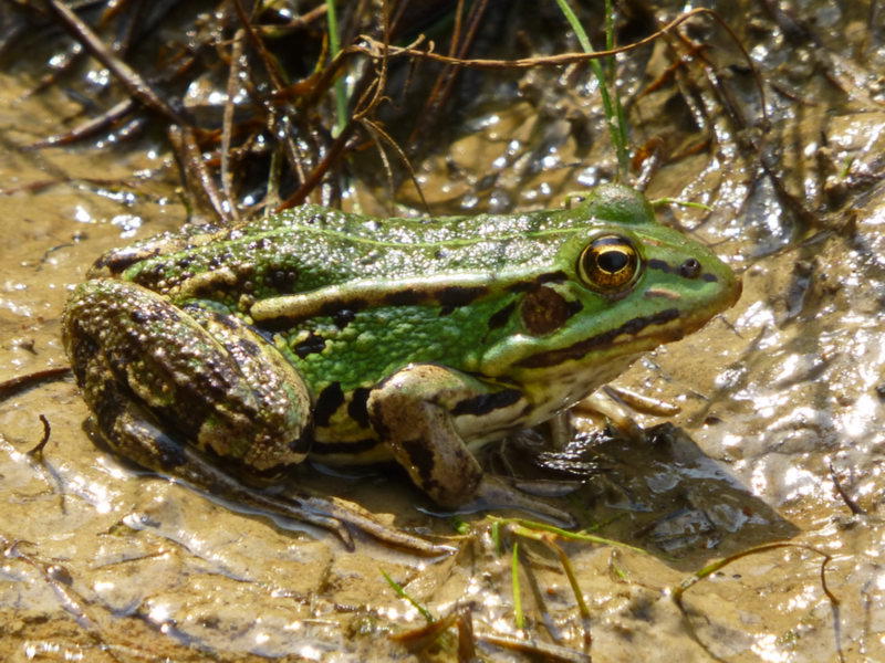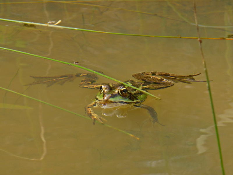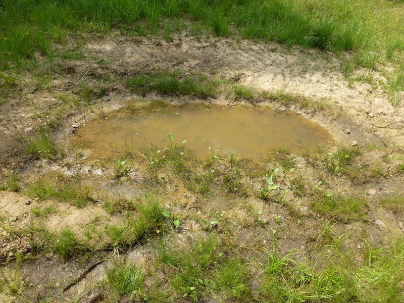 Die Drover Heide ist bekannt für reichliches Pilzvorkommen, insbesondere wachsen hier Tintenfischpilze (Clathrus acheri), Rotkappen (Leccinum) und Parasole (Macrolepiota procera). Da ich das alles hier aber schon gesehen habe, habe ich dieses Mal einen anderen Weg eingeschlagen, vorbei an großen Blumenwiesen und den noch übrig gebliebenen Pfützen, wo sich natürlich einiges an Getiers angesammelt hat