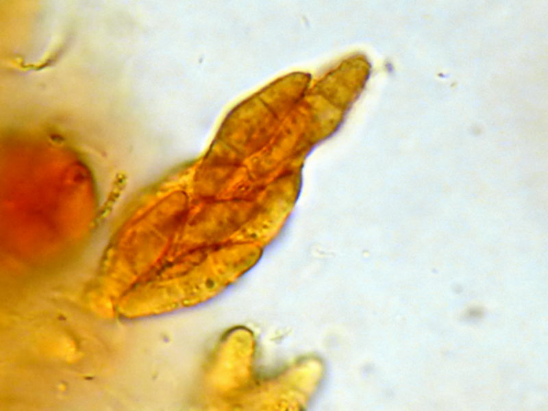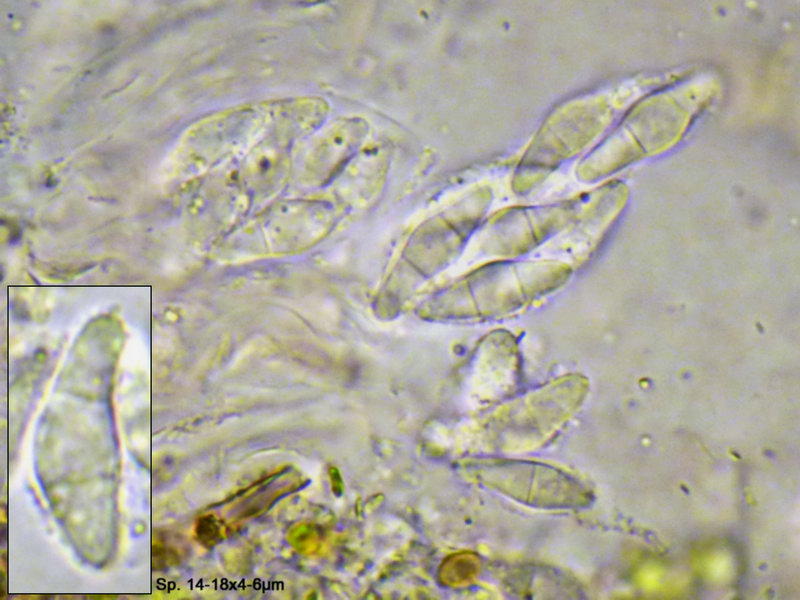 Mikroskopisch allerdings sind die nur 2fach septierten und somit aus 3 Zellen bestehenden, hyalinen Sporen völlig untypisch für diese Gruppe, deren Sporen ansonsten sehr lang und sehr schmal sind. Es gibt allerdings nicht allzu viele Pilze aus diesen Gruppen mit abstehenden Haaren/Seten und mikrometer winzigen Fruchtkörpern.