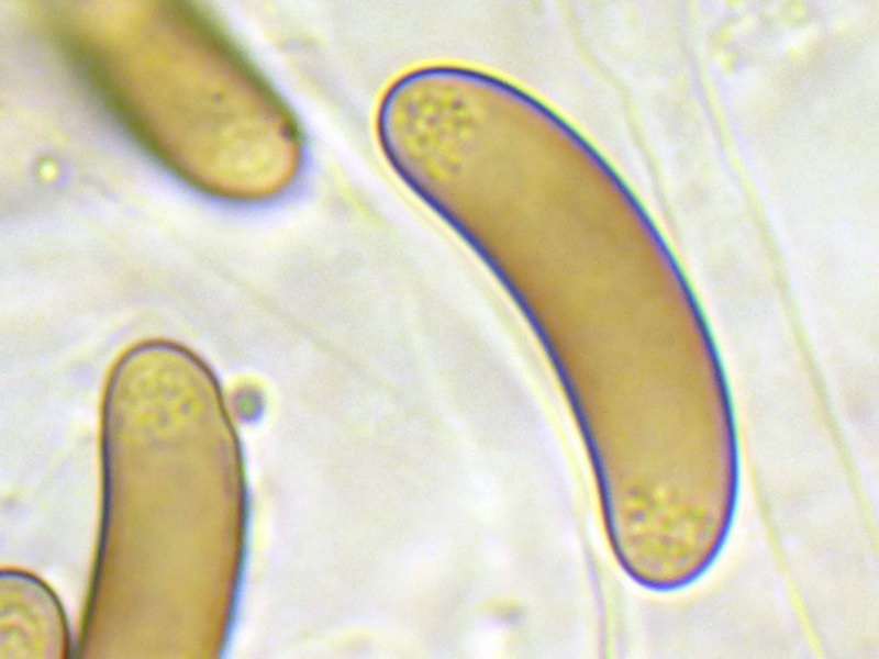 Sporen 18-25 (-35) x 4-5 µm, sehr variabel in den Maßen, braun, nicht septiert, glatt, Enden abgerundet. Asci 8sporig, langstielig, keulig, IKI-, Kongo -. Paraphysen unscheinbar, hyalin und septiert. Hyphenfilz auf braunen, dickwandigen Hyphen, diese septiert.