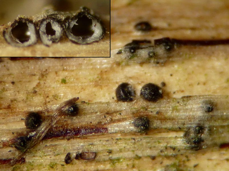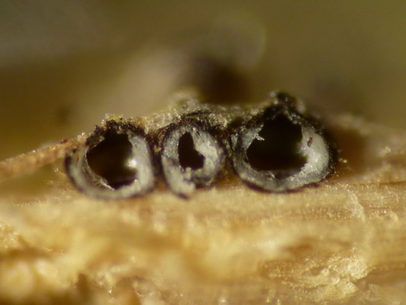 Die Fruchtkörper sind etwa 0,3-0,4 mm breit.