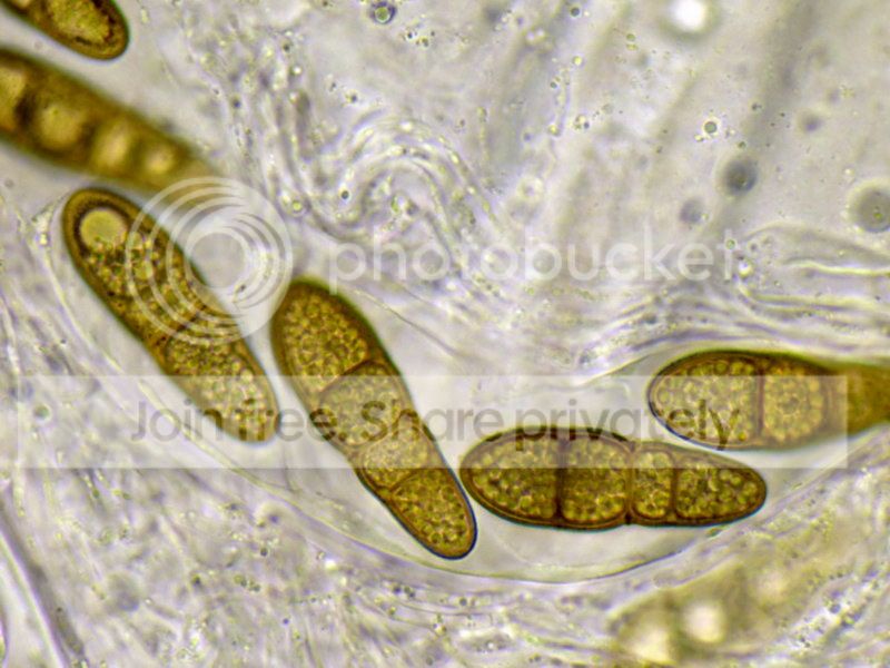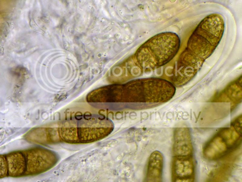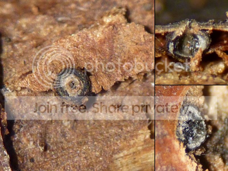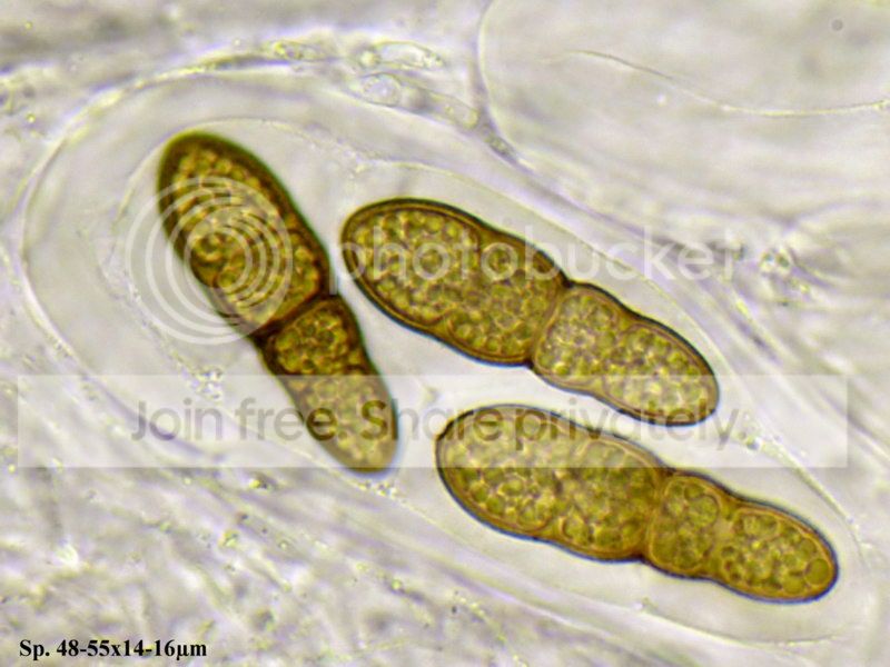 Naja ich dachte mir, guck ich jetzt schnell mal drüber, in dem ich mir den erstbesten Ast rausgreife, und sehe da: ein Kernpilz, der sich unter der Rinde versteckte und den ich schon so als Splanchnonema sp., Gekrösekugelpilz, identifizieren konnte. Unter dem Mikro dann das erwartete Bild, aber irgendwas war anders. Sporenmaße passten nicht zu den bisherigen Funden (S. argus, loricatum, Pleomassaria carpini, alle Bilder: funghiparadise).