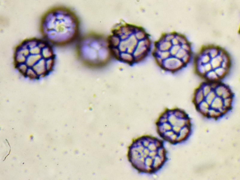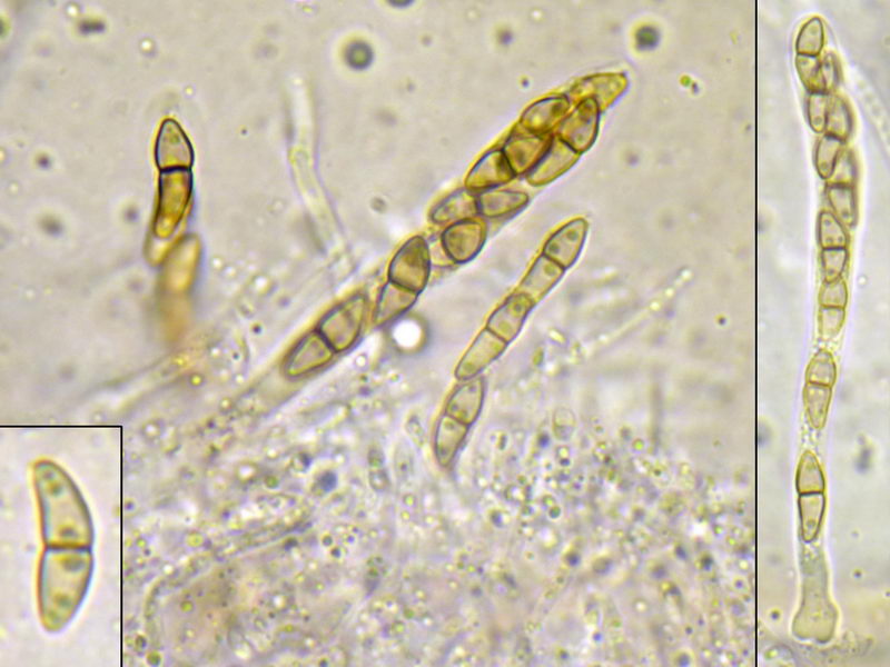 * unteres Foto mit Sporen aus dem von D. conoidea befallenen Fruchtkörper!