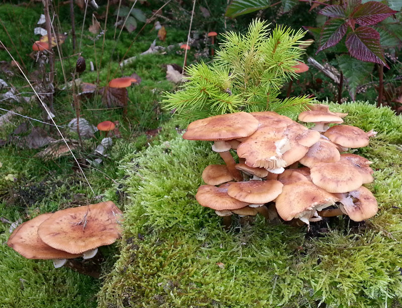 ... an Hallimasch habe ich jetzt in diesem Fall eher nicht gedacht, weil die nicht in Büscheln gewachsen sind, sondern eher solitär. Sicher war ich mir nur bei diese Exemplaren.