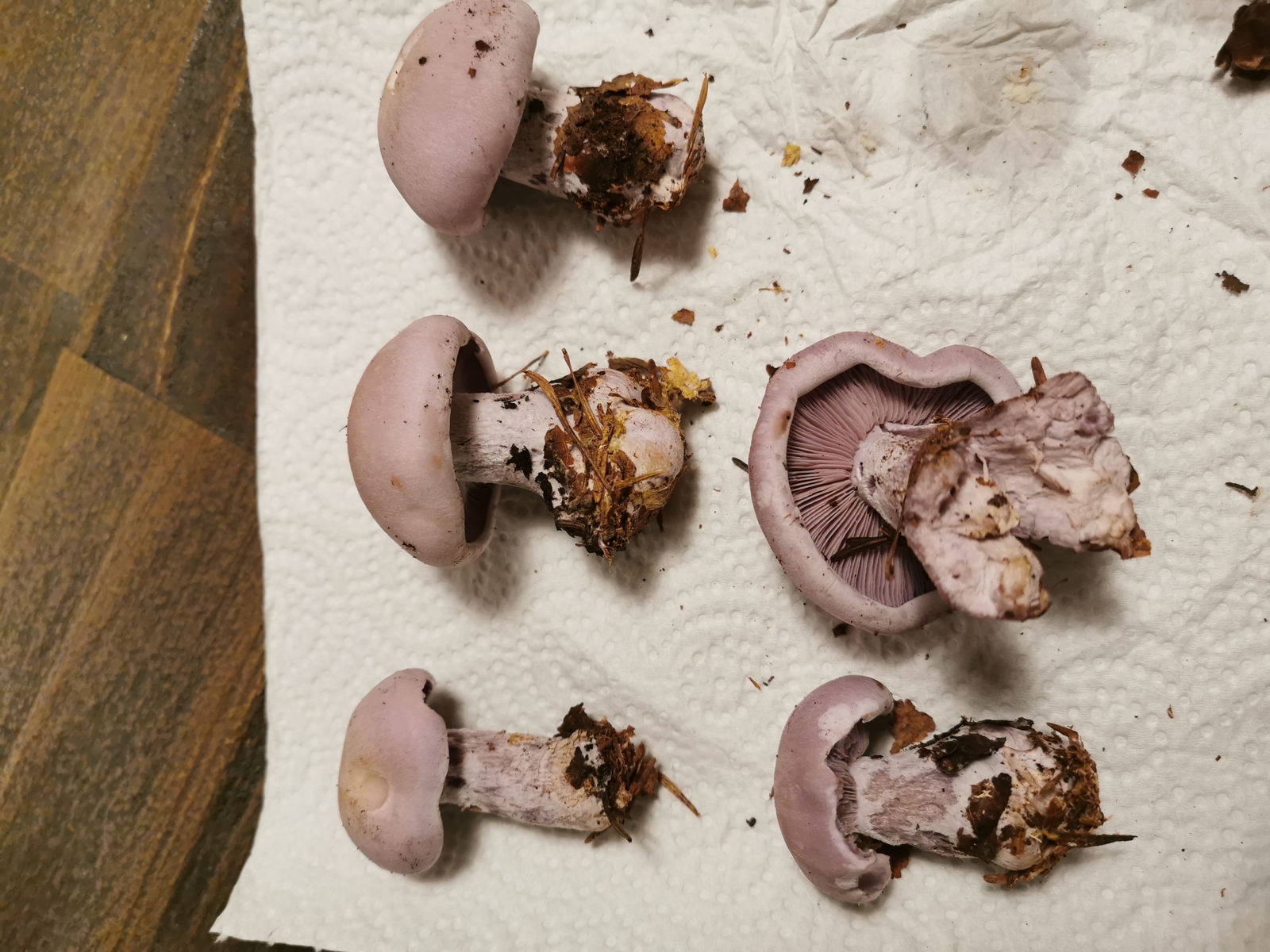 Könnten das violette Rötelritterlinge sein? Was wären die Unterschiede zum Beispiel zum Lila Dickfuss?