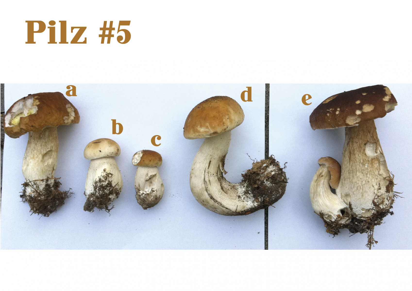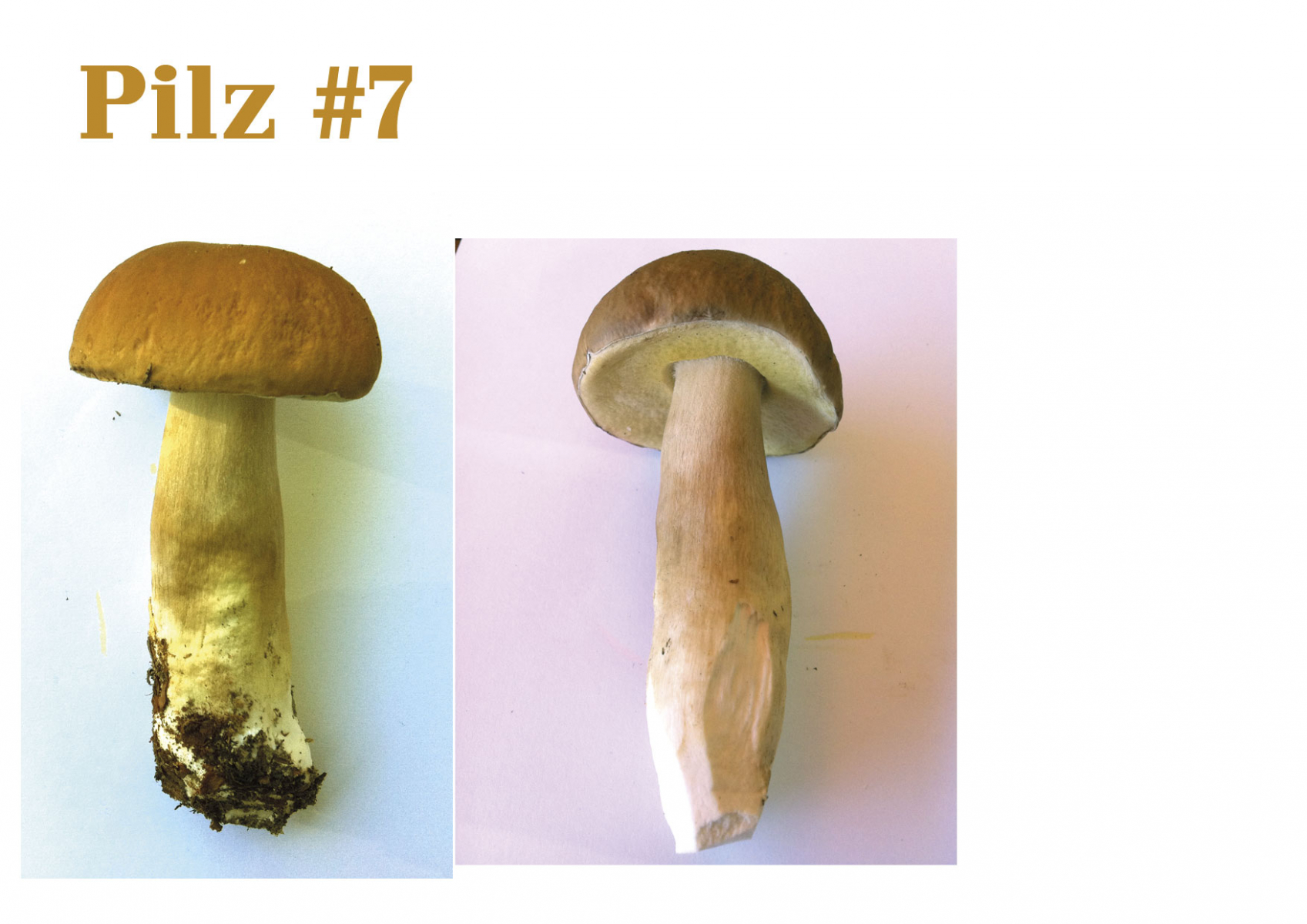 Pilz #7: Ist das jeweils der gleiche Pilz? Die Farben sind recht unterschiedlich. Es könnte auch eine Marone sein.