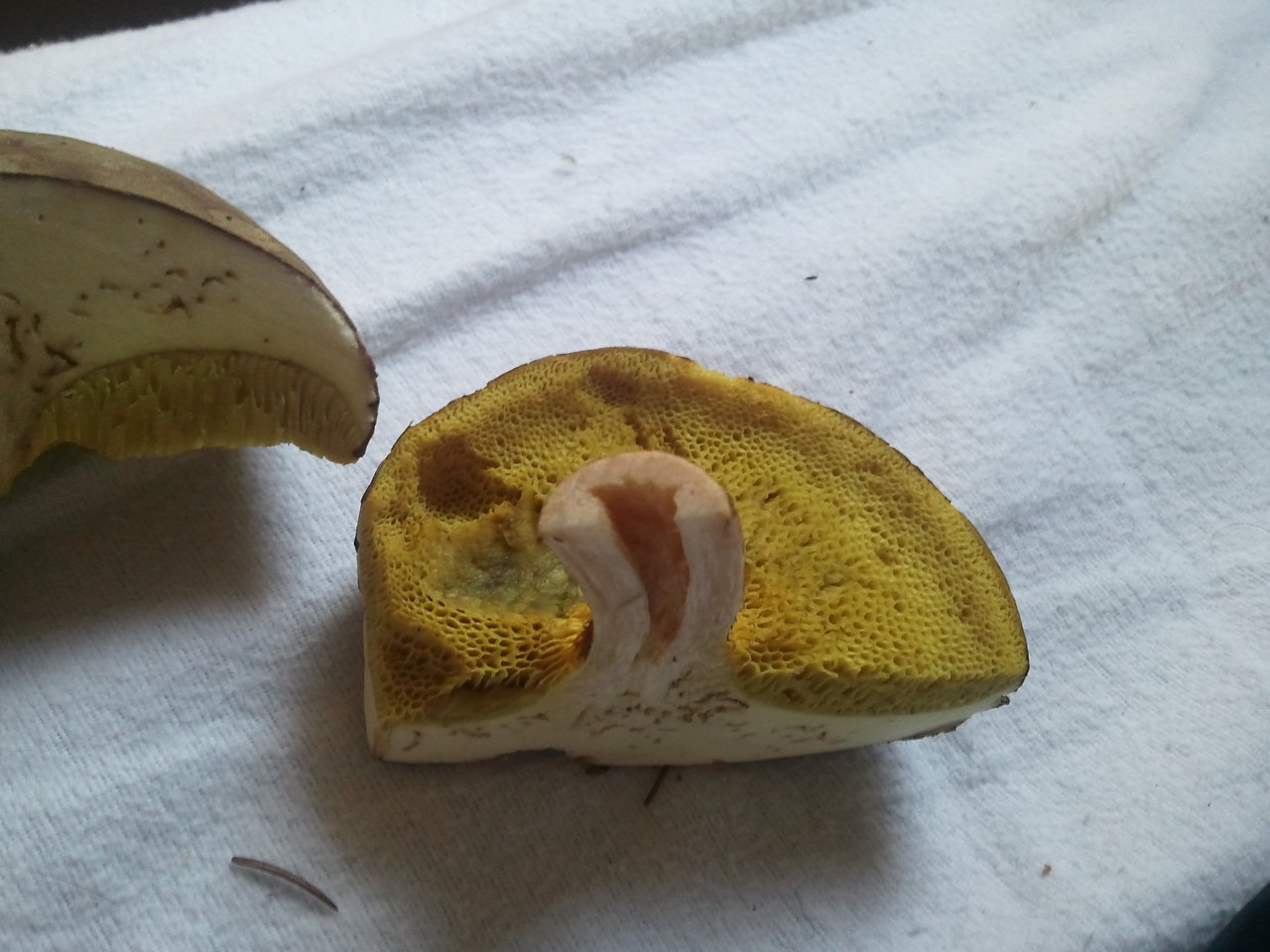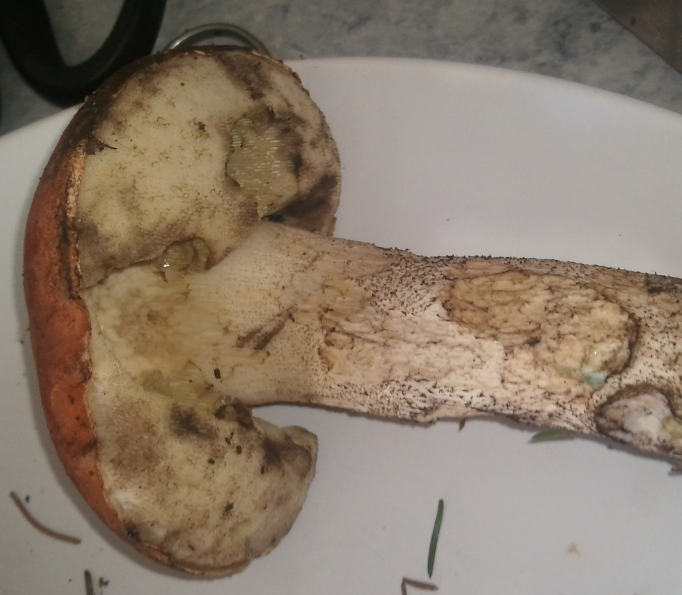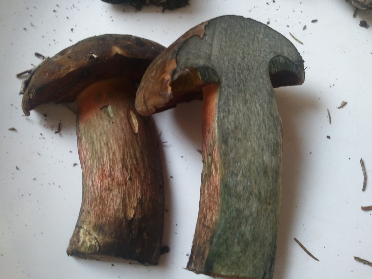 - Verfärbung des Fruchtkörpers im Schnitt: blau