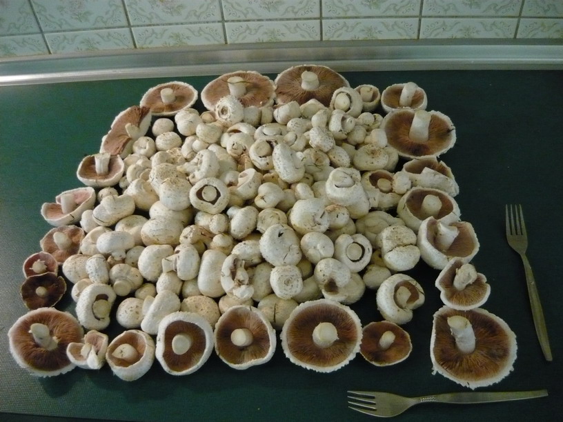 Wir waren gestern auch mal wieder unterwegs,allerdings haben wir uns dabei nicht mal einen Kilometer von zuhause wegbewegt.In letzter Zeit gab es bei uns im Dorf und der näheren umbebung mehr Pilze als im Wald ! Deswegen haben wir uns auf den wiesen und Baumstücken umgesehen und auch einiges gefunden !!