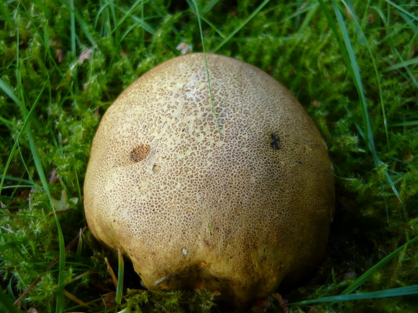 Dann diesen wunderschönen Bovisten ,er war ganz weich und angenehm anzufassen ,wäre interessant die genaue art zu erfahren ! ich werde mal drauf achten wie gross er noch wird.