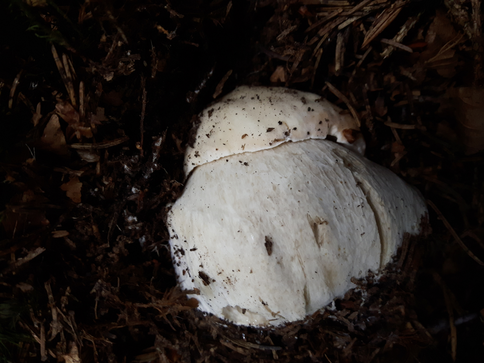 (auf einem Bild ist auch ein Fichtensteinpilz zum Vergleich zu sehen). Hauptargument für den Kiefernsteinpilz ist für mich das weiße Netz an der Stielspitze - aber der Rest der Stiele zeigt mittlerweile ein dunkles Netz wie beim Gallenröhrling, und die Poren färben sich an Druckstellen leicht bräunlich, das erscheint mir seltsam für einen Steinpilz. Hutfarbe und -beschaffenheit ähneln aber dem Kiefernsteinpilz, und die Poren wirken wie weiß bestäubt, man erkennt keine Einzelporen.