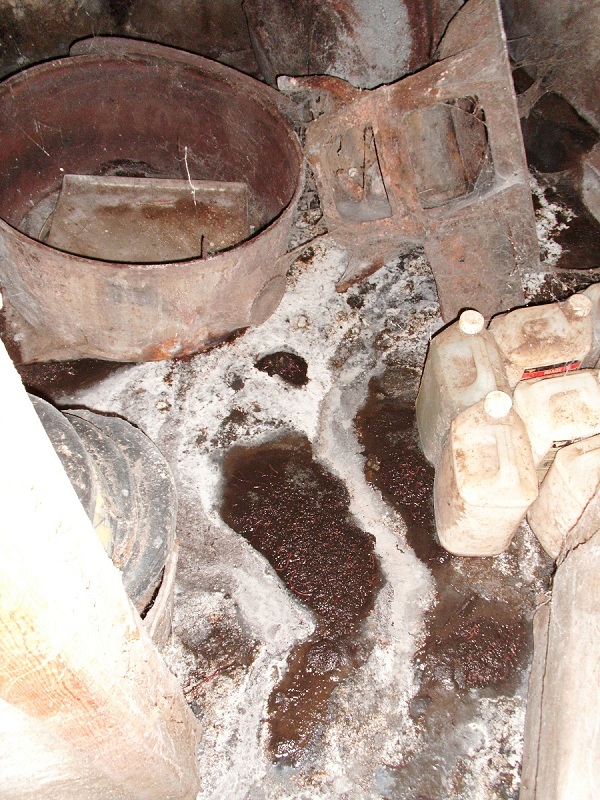 Der Pilz, oder was es auch immer ist, besteht aus braunem Matsch (sieht ein bisschen aus wie Blasen) wo sich dann noch so weisse Streifen rundherum gebildet haben. Eigentlich, entschuldigen sie meinen Ausdruck, einen haufen Kot mit Sahne! Es stinkt zur Hølle da unten und ich weiss nicht was es ist! Ich wuerde gerne Interessierten eine Mail schicken, wo dann das ganze Unheil zu sehen ist!