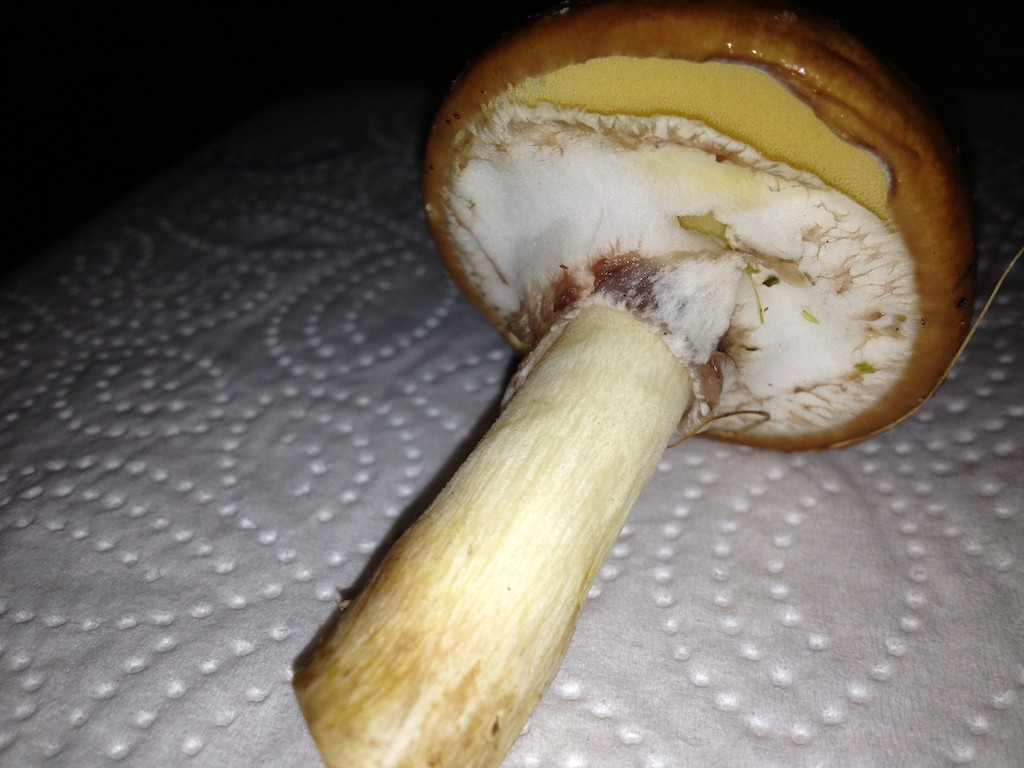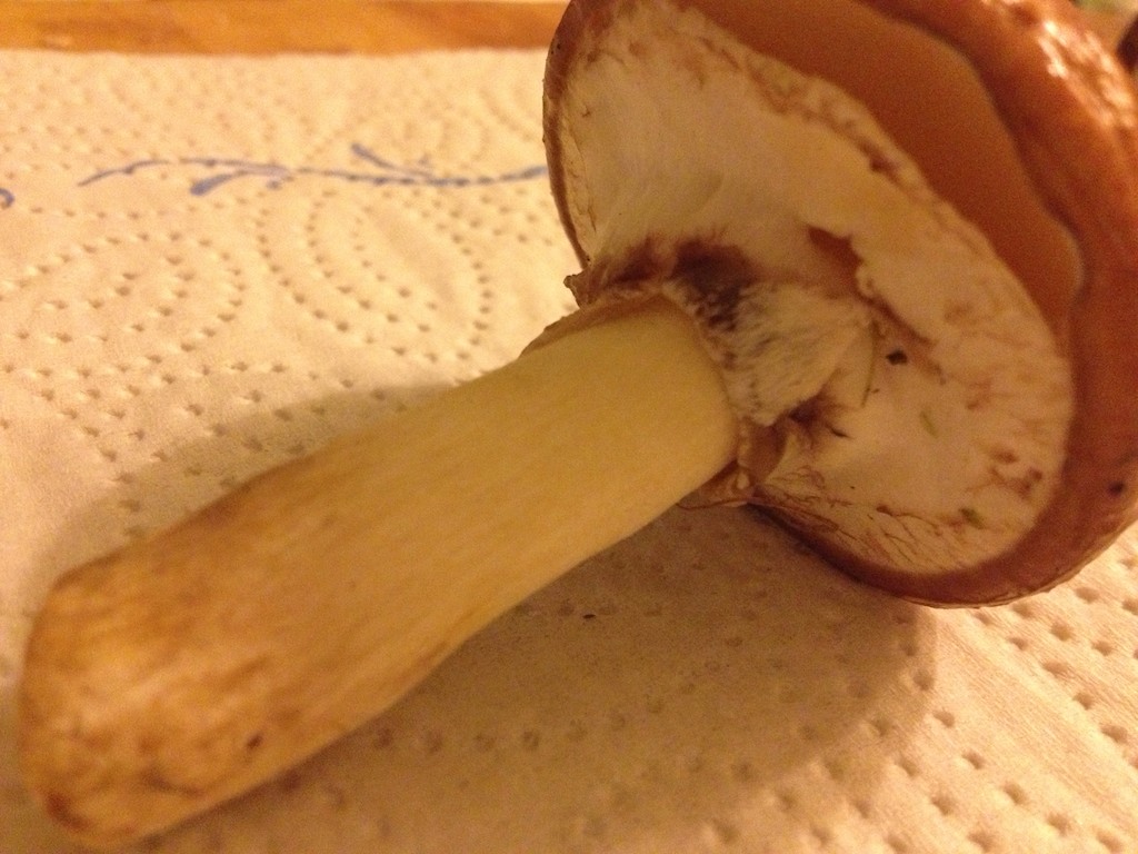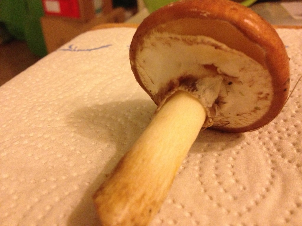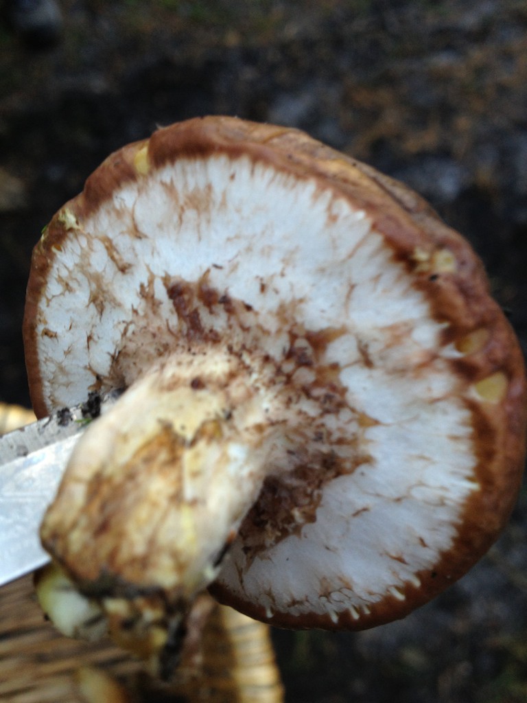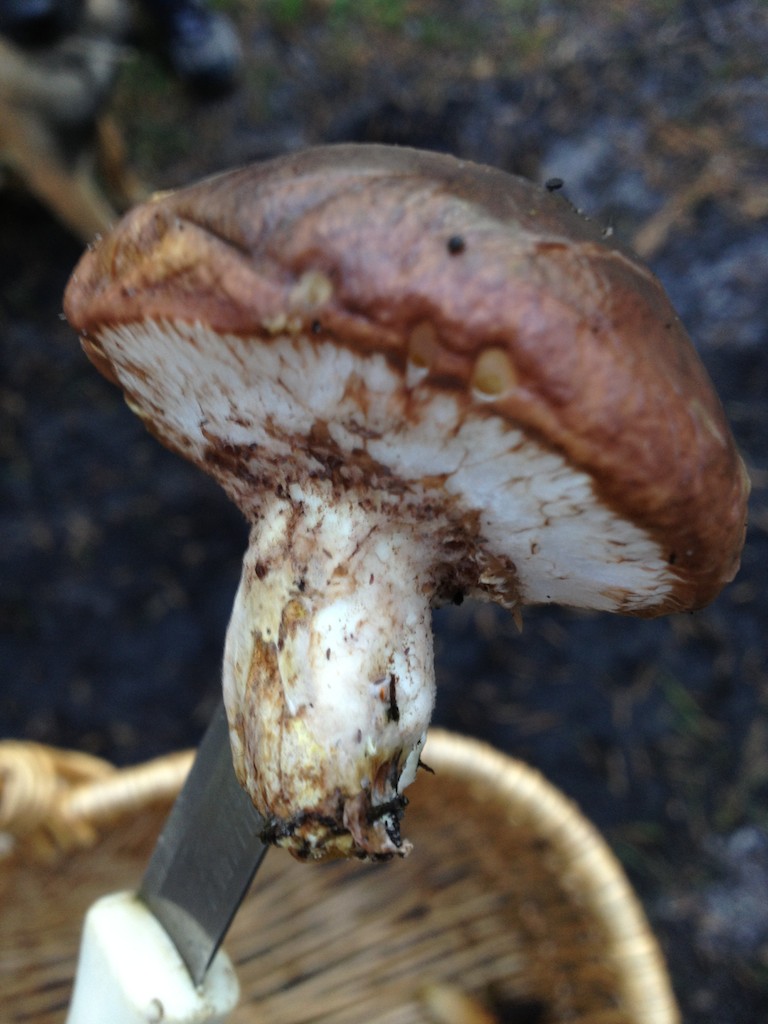 Nur wenn wir der Meinung sind, dass wir einen sehr ähnlichen Pilz finden nehmen wir sie mit. Und wir haben unser Buch sogar mit, machen Pause und versuchen zu bestimmen.