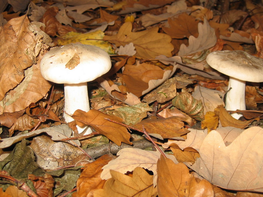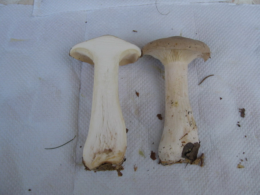 gab es sehr viele davon, auch einige etwas größere Exemplare,der Hut ist eher grau, Stiel weiss, Lamellen cremefarben, richt pilzig-würzig.