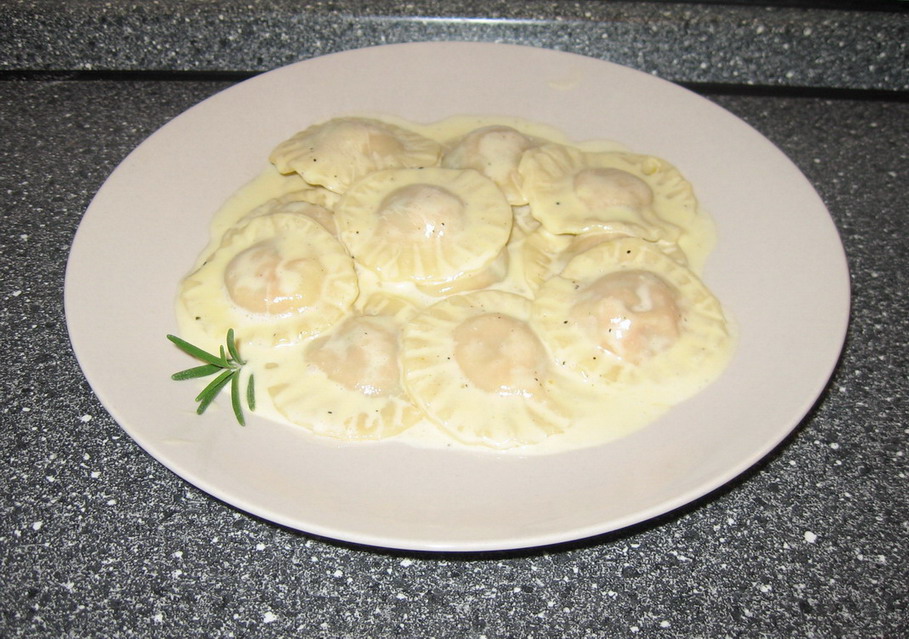 Schmeckt auch richtig lecker...nur bis man die Ravioli gefüllt hat dauert eine weil. Leider bin ich noch nicht im Besitz einer Nudelwalze und hab alles mit einem Nudelholz ausgerollt...![]()