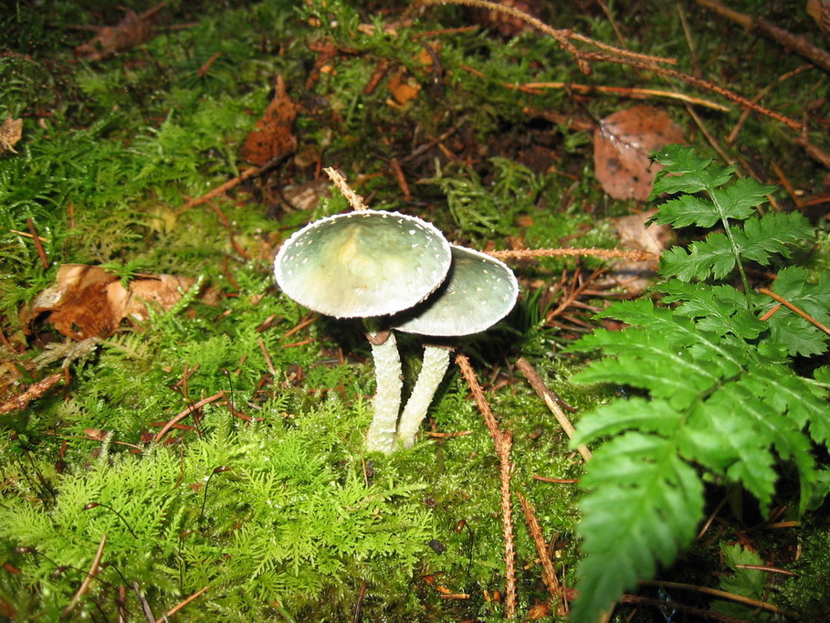 Bild 2 > hübsch die zwei grünen mit grauen Lamellen, der Hut war trocken. evtl. der "Grünspan-Träuschling"?