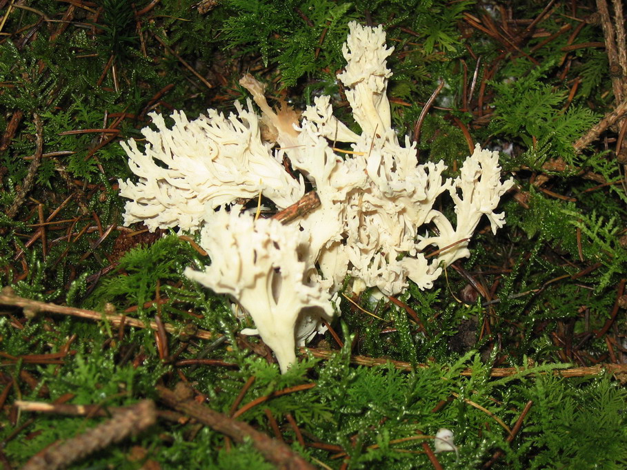 Bild 3 > eine Koralle aber welche? weiß, in Fichtenschonung mit Moos.