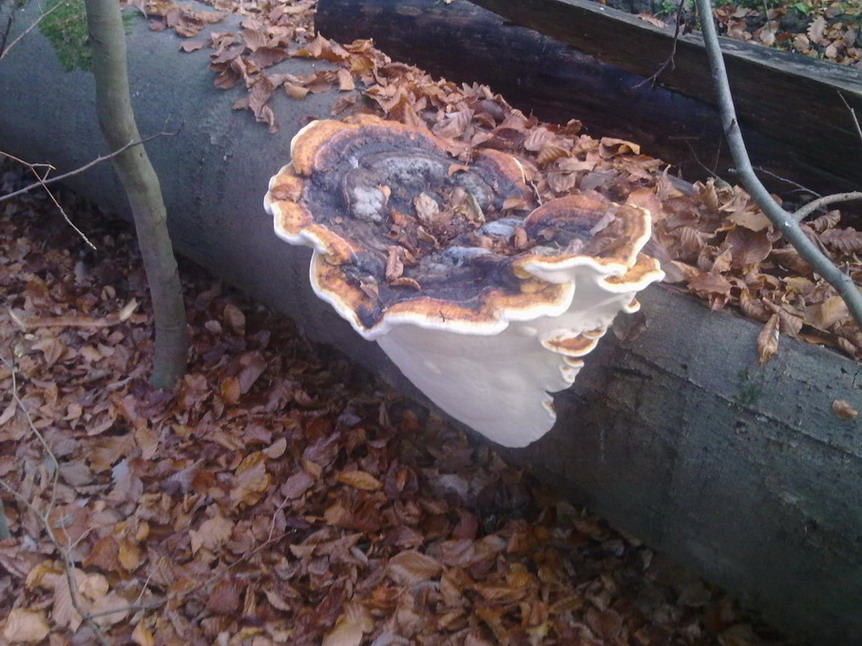 Der Baumpilz (weiß garnicht wie er heißt, Baumstamm war wohl mal eine Buche) hatte einen Durchmesser von ca. 45-50cm.
