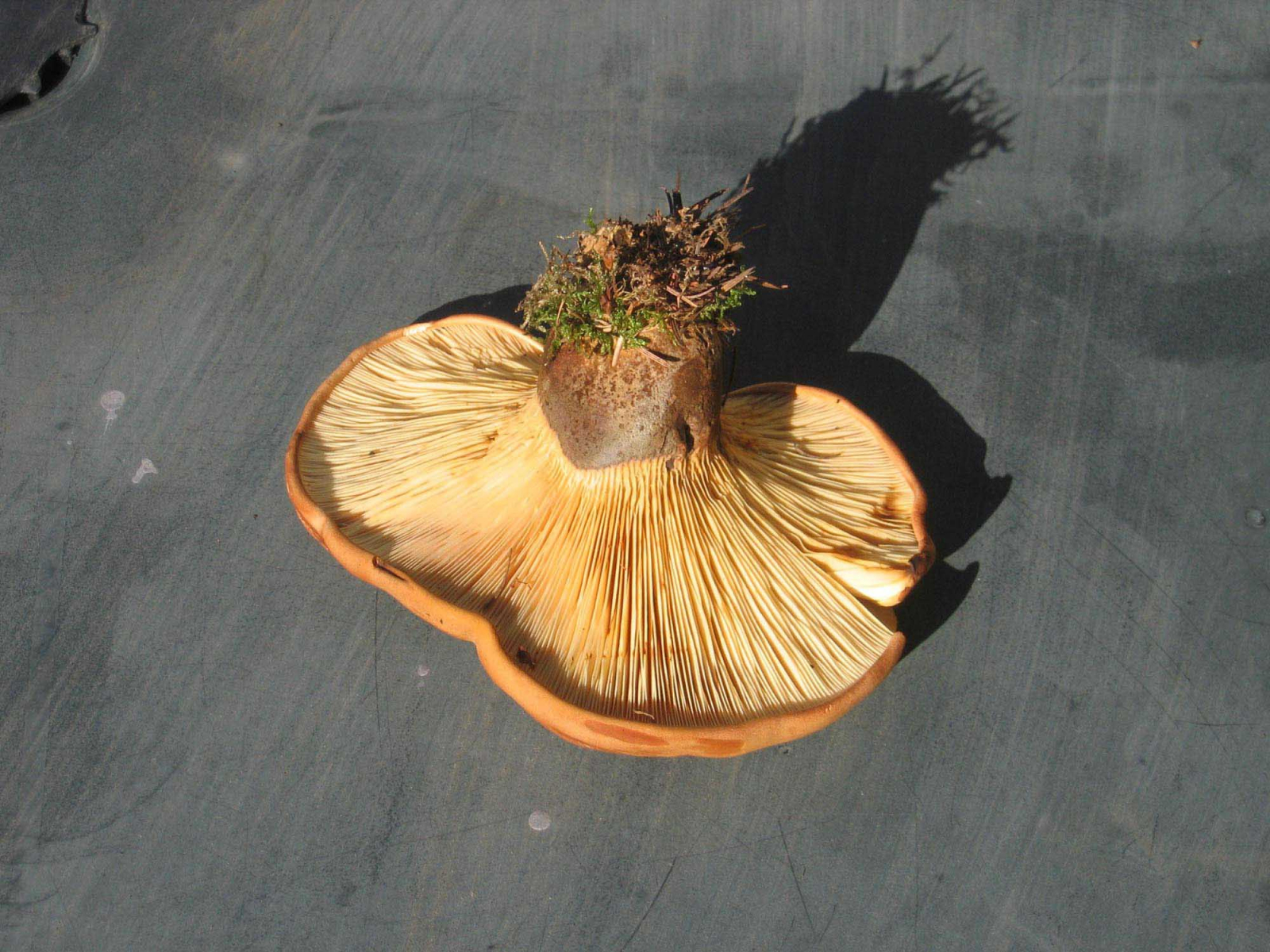 gerade gefunden. was dem gelbstieligen Milchseitling widerspricht ist das fehlende gallert unter der huthaut und die farbe und flockigkeit des stiels.