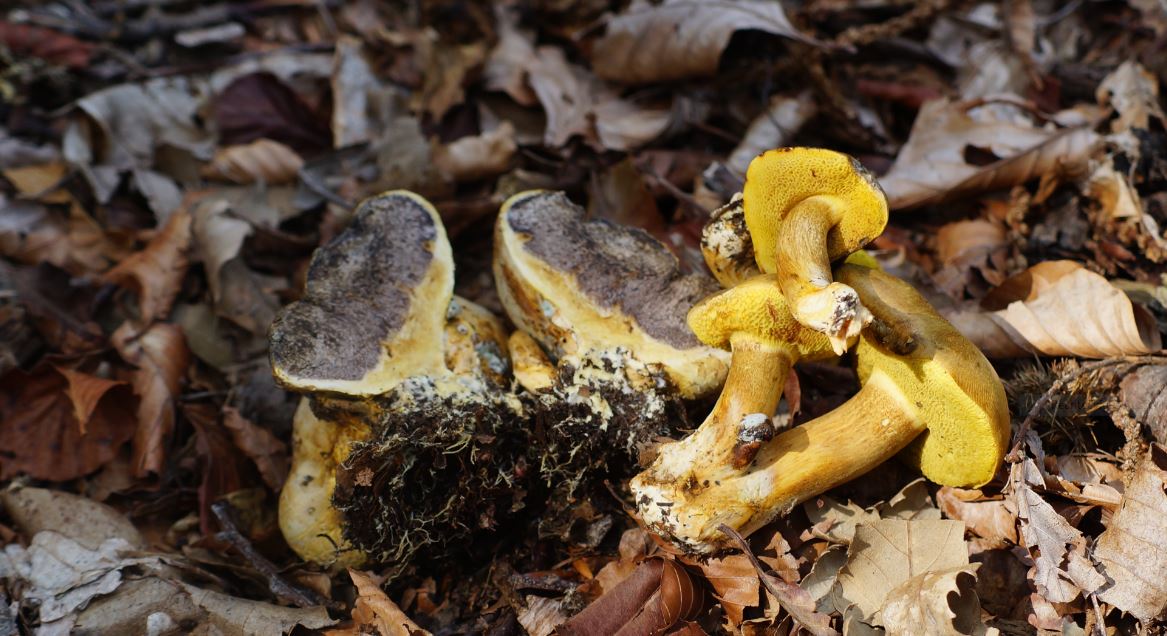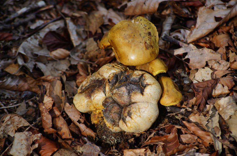 den Kartoffelbovist mit Schmarotzer -Röhrling - Xerocomus parasiticus.