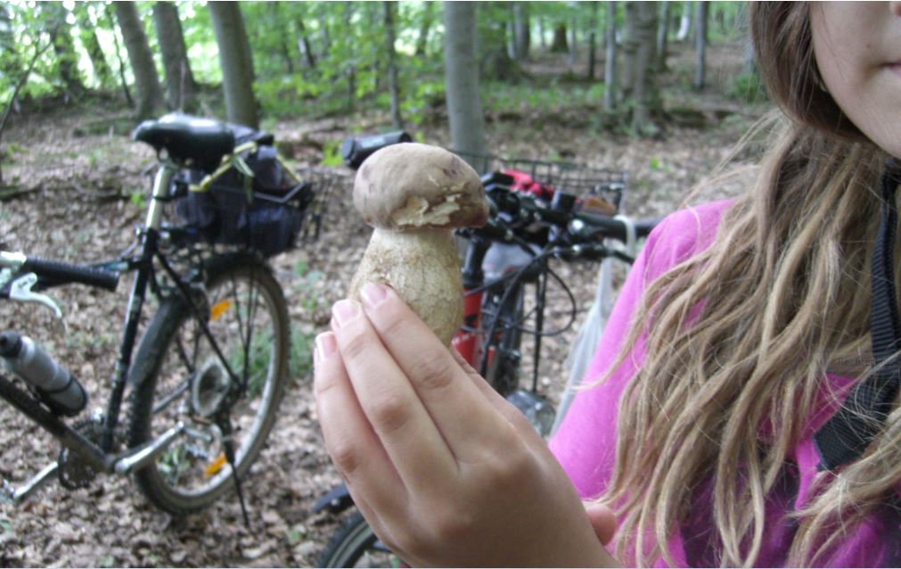 Ich kündige an, die Fahrräder (gut 80 Meter weg auf dem Waldweg) zu holen.
