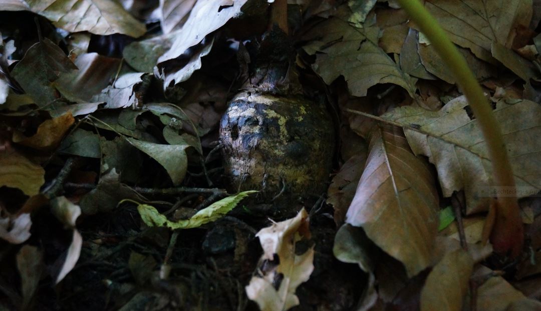 Vermutlich flogen irgendwann im Herbst oder sonst wann ein paar für untauglich befundene Knollen Richtung Wald, die sich dann wider Erwarten dort erhalten haben.