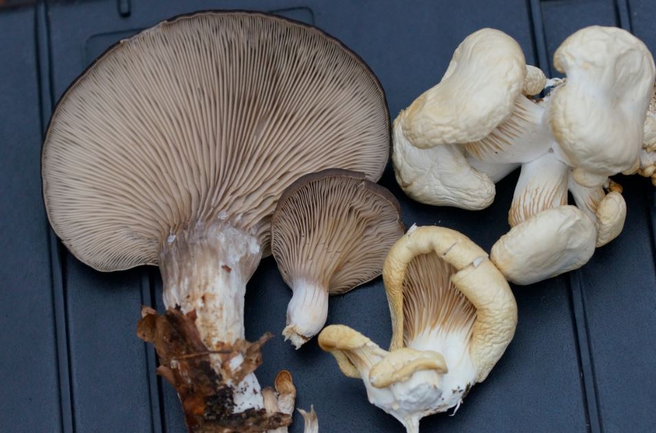 Es geht um die fast gänzlich weißen Fruchtkörper, die anderen FK von Pleurotus Ostreatus, die auch allesamt von heute stammen, habe ich zum Vergleich dazugelegt.