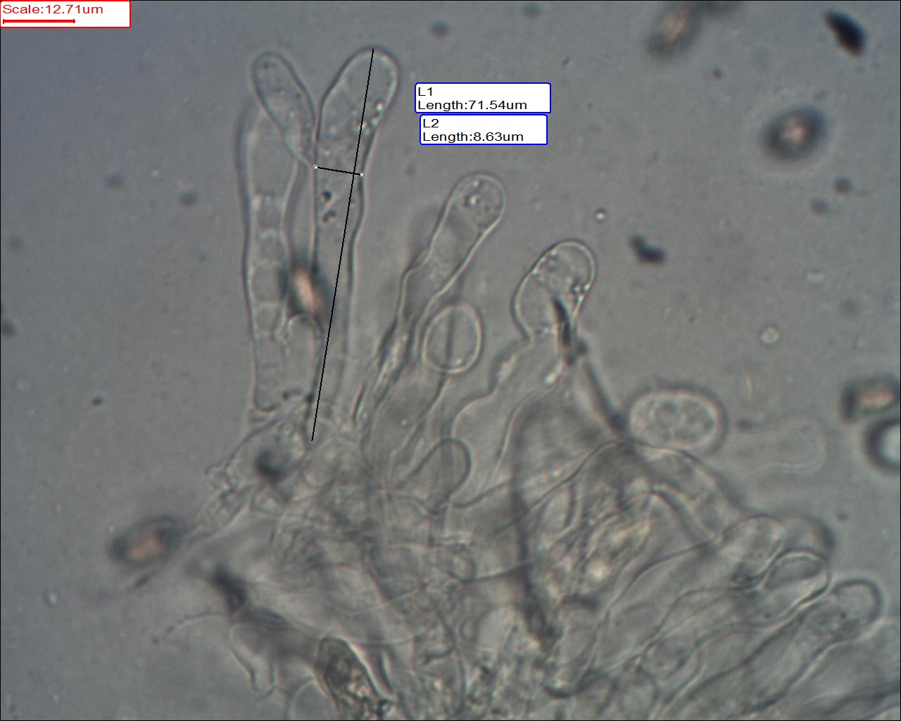 Das klappt grad nicht so gut, bekomme keine guten Präperate hin. Aber was mir auffällt ist, das der "Hals" der Cheilozystiden länger ist und der Kopf zum Teil noch eine kleine "Antenne" hat im Gegensatz zu den Caulozystiden. Allerdings habe ich darauf bei den Caulozystiden nicht geachtet und müsste nochmal nachschauen, ob das wirklich nur bei den Cheilozystiden ist.