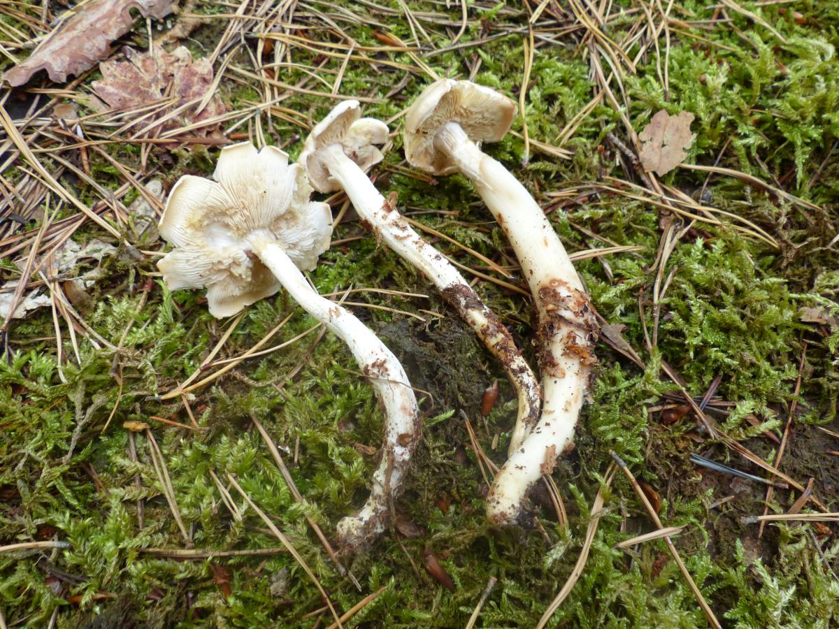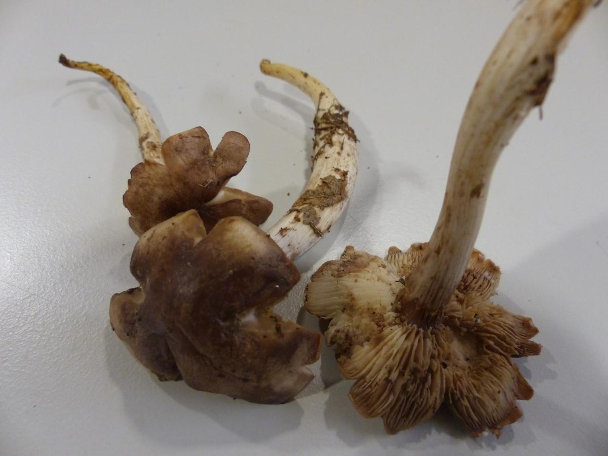 Zuerst was der ganze Pilz weißbis creme farben. Jetzt nach dem Trocknen sind die Hüte kräftig braun.