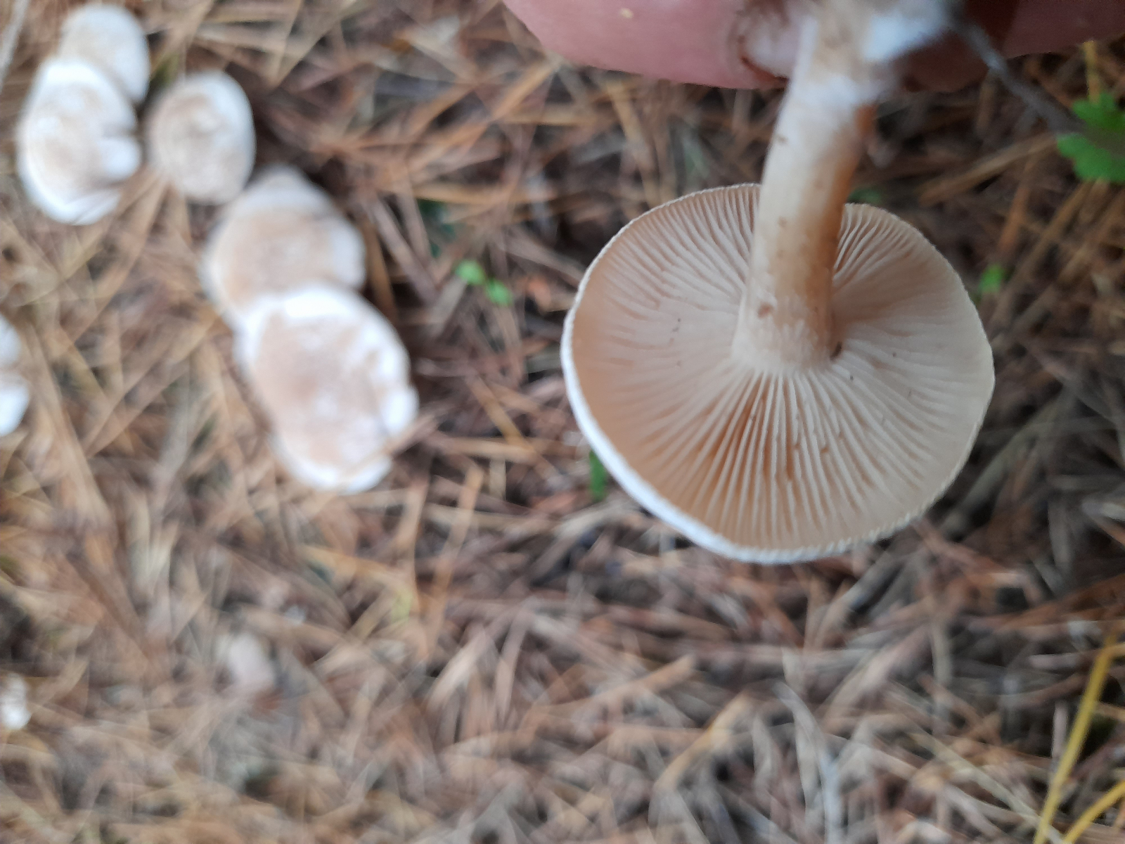Tricholoma imbricatum scheint mir das nicht zu sein, denn der Hut ist viel stärker umgekrempelt. Was bräuchtet Ihr noch zur genaueren Bestimmung?