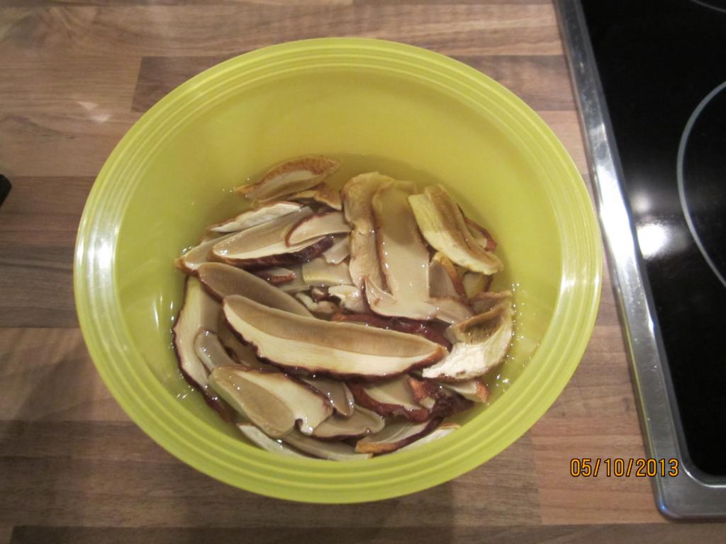 Eine Hand voll Steinpilze etwa eine Stunde einweichen: