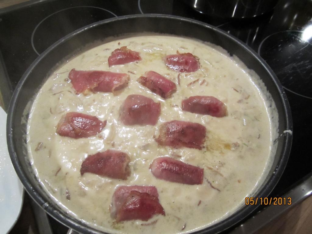 Das ganze kann nun abgeschmeckt werden, ich benutze dazu Pfeffer, Salz, Brühe und Worchester Sauce. Eventuell etwas andicken mit Soßenbinder.