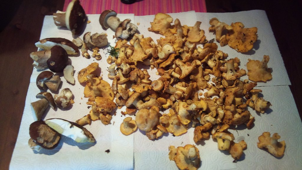 Dieses Jahr war noch nicht so gut, ein paar Pfifferlinge, das wars. Aber heute gings endlich los, nachdem es vorgestern geregnet hat. Die Stellen abgeklappert und siehe da, massig Pfifferlinge und sehr schöne Steinpilze! Leider keine Bilder im Wald, dafür aber daheim welche gemacht. (Bitte Nicht mekkern über die Quali, als Schüler kann man sich nun mal keine gute Kamera leisten, da muss das Handy her