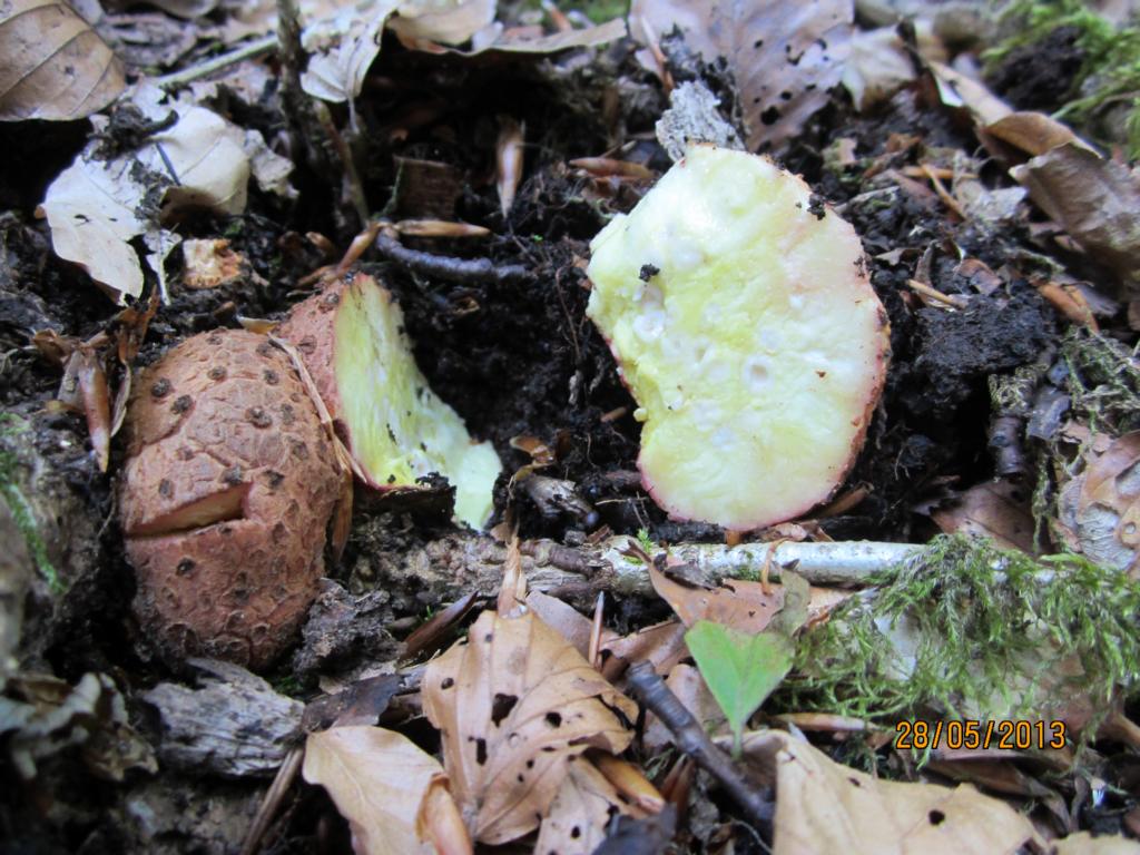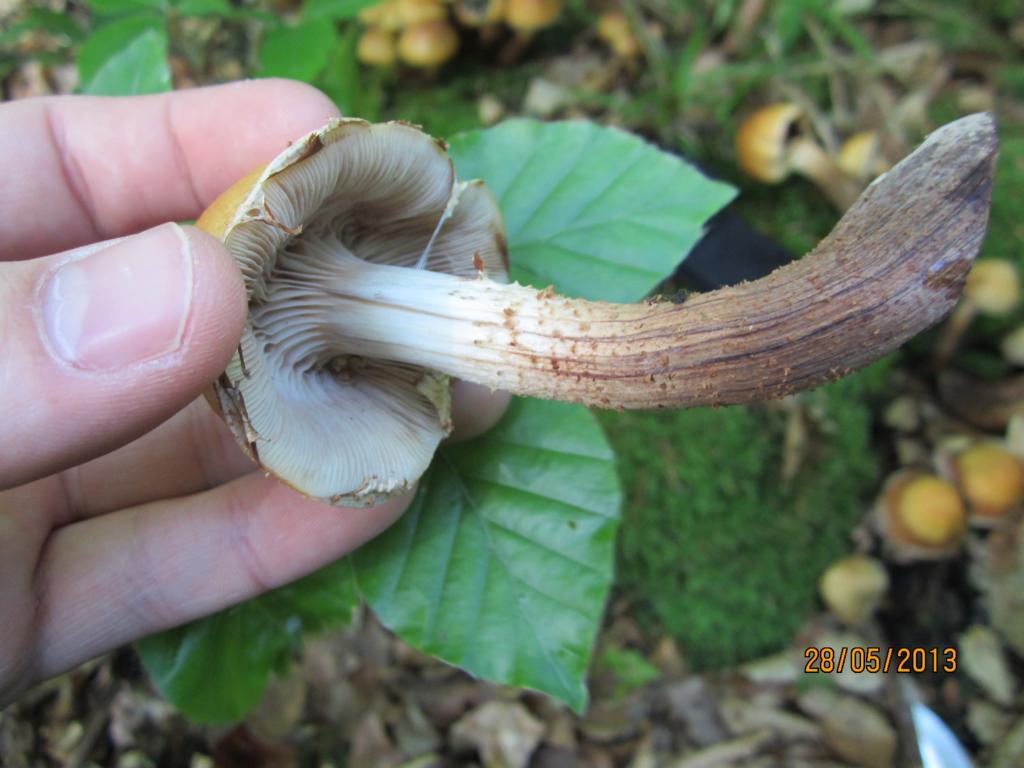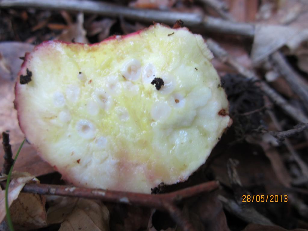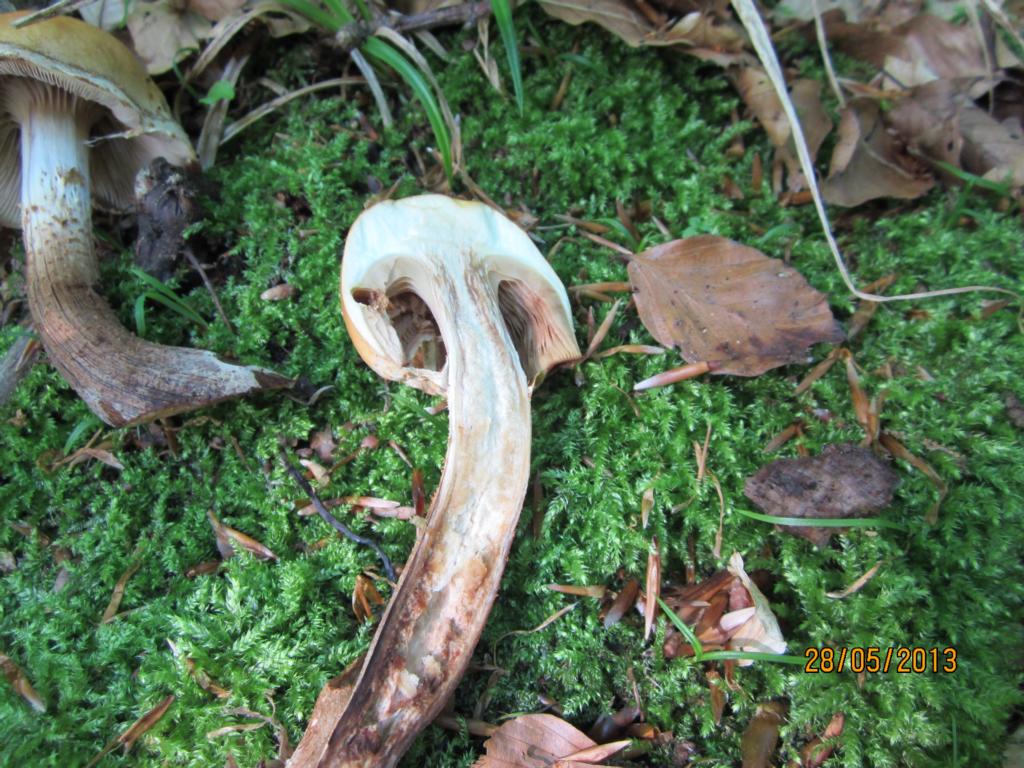 Geruch irgendwie unangenehm, etwas mehlartig würde ich sagen, etwa 7-9 cm groß... Habe natürlich auf den ersten Blick sofort an Cortinarius sanguineus gedacht, aber da würde ja irgendwie einiges wie die Farbe des Stiels z.B. nicht passen... Jemand weitere Vorschläge?