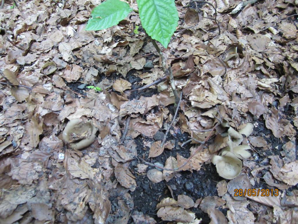 Die Hochgerripte Lorchel - Helvella acetabulum, massenweiße