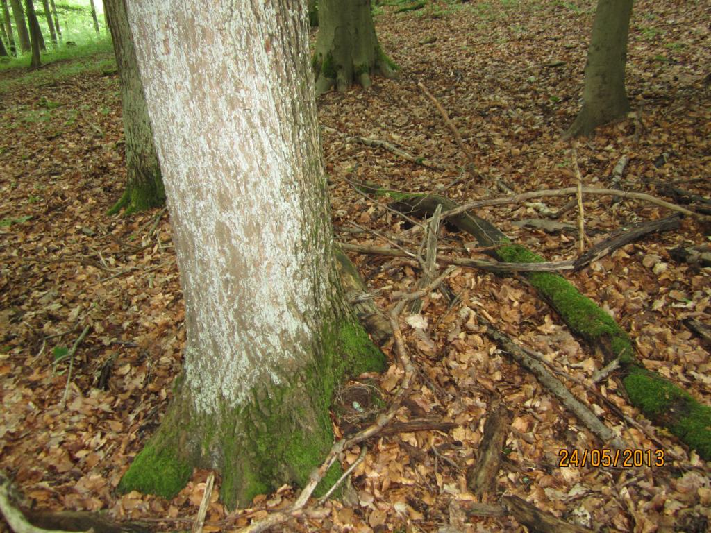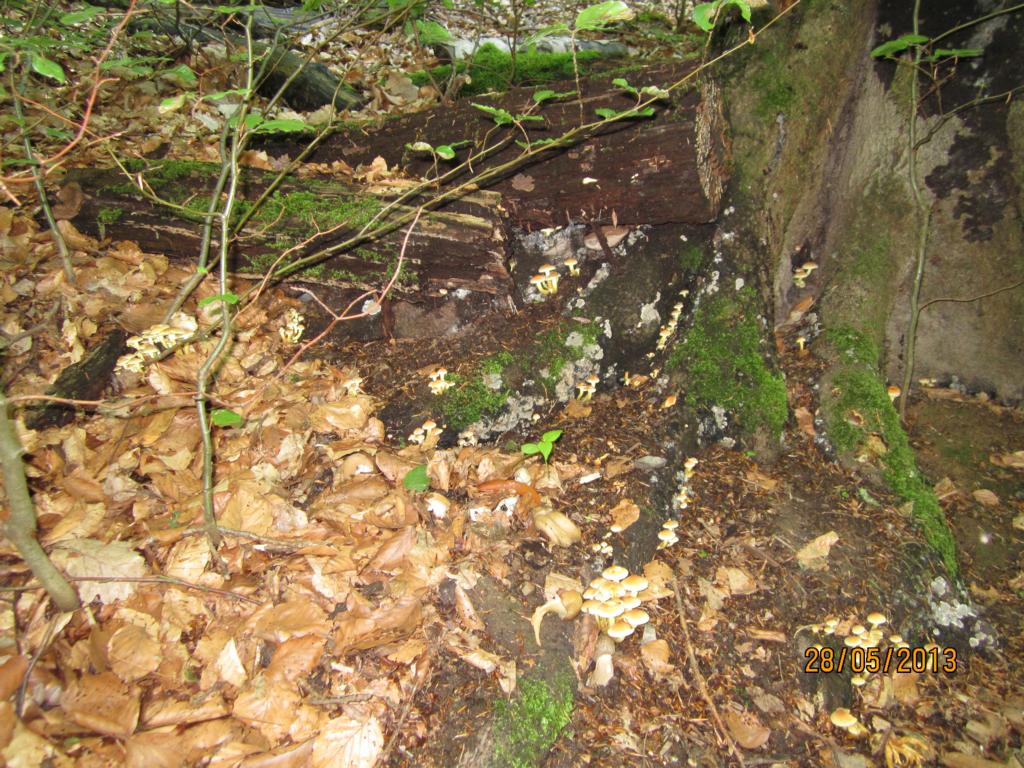 Gefunden im Mischwald, Buchen, Eichen und etwa 150m weiter 3 Kiefern.