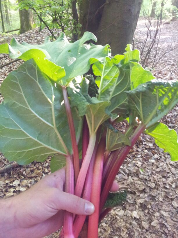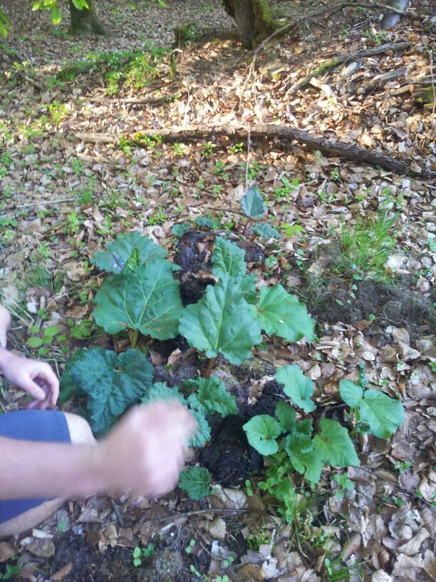 Aber was zu Essen gabs trotzdem und zwar frischen Rhabarber. Da hat wohl irgendwann mal jemand seinen Kompost im Wald gelassen, auf dem er jetzt wächst.